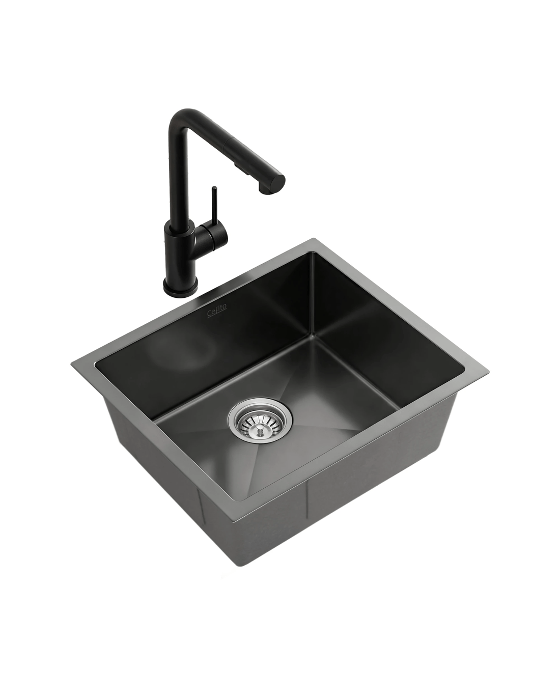 Sold by Aisle SixCefito Stainless Steel Sink 44x44CM With Pull Out Mixer Tap Kitchen Basin Single Bowl - Black