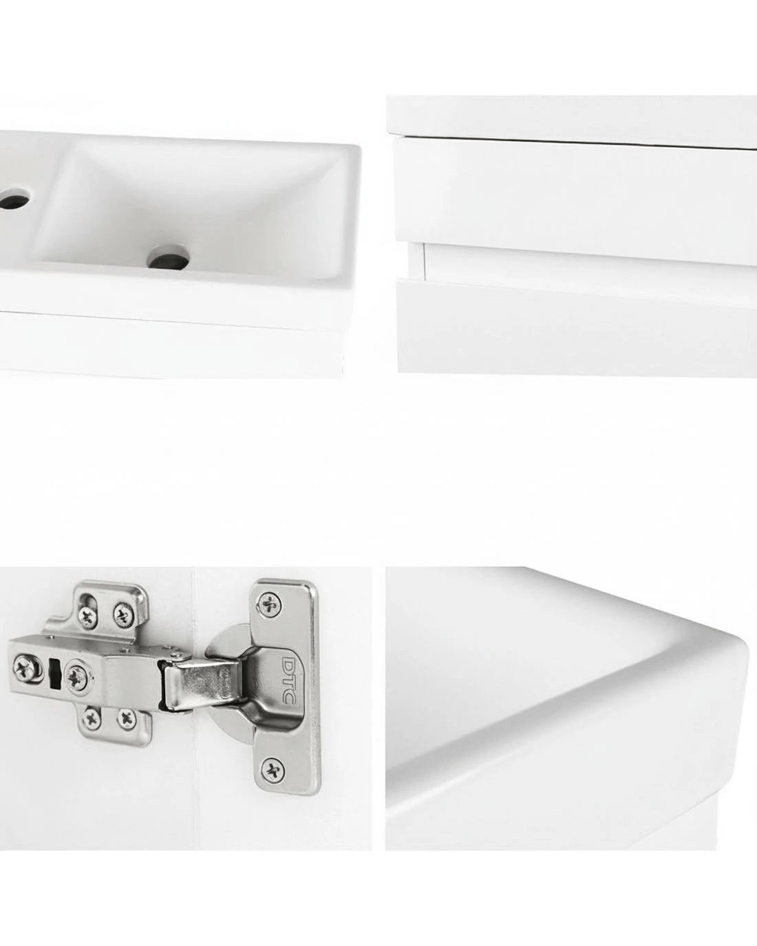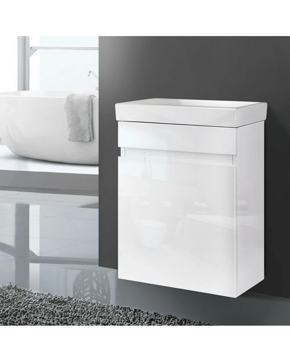 Add a touch of modernity to your bathroom with our Bathroom Vanity Unit. With its MDF board construction and high-gloss finish, the vanity cabinet looks absolutely flawless and feels strong and stable with every day use. Inside, there is ample room for all your bathroom essentials. On top, the crystalline ceramic basin is smooth and highly resistant to scratches, leaks or bacteria growth. All in, our bathroom vanity unit is a definite plus for your modern bathroom.