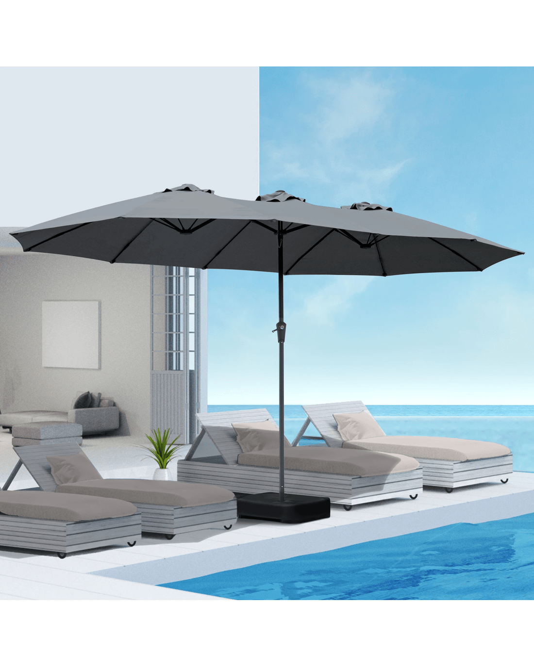 Sold by Sello ProductsCentra 4.5x2.6M Outdoor Double Large Patio Umbrella with Base - Grey
