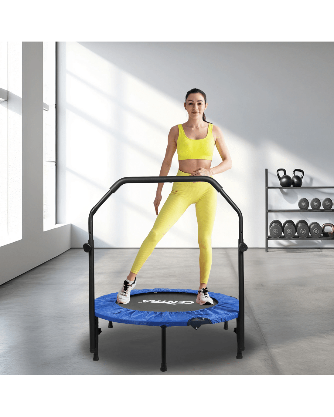 Ideal for small spaces, this trampoline is easy to store and compact enough for any home gym. Its efficient design makes it perfect for low-impact cardio, toning, and full-body workouts. Jump, bounce, and enjoy a workout that’s kind on your joints but intense on results.