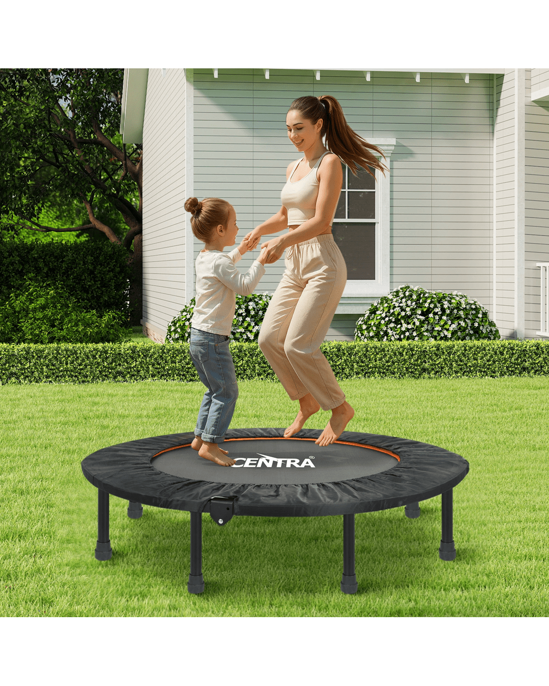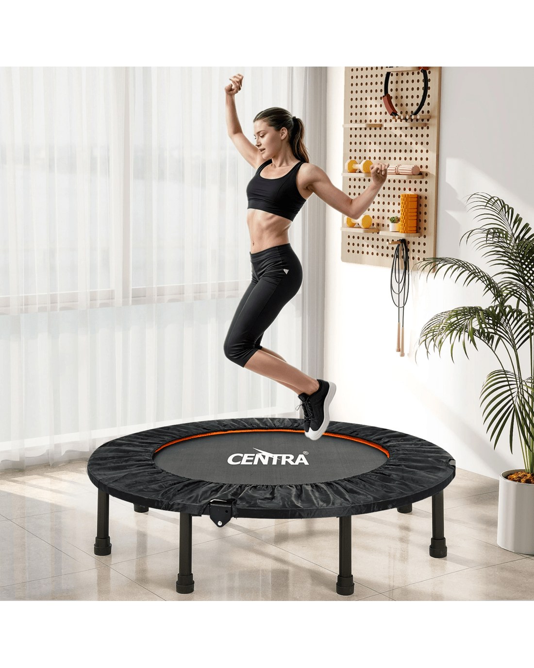 Engineered for versatility, this foldable trampoline allows quick setup and compact storage, making it perfect for apartments or limited spaces. The quiet, shock-absorbing foot pads help reduce noise, giving you a quiet jumping trampoline suitable for morning or late-night sessions without disturbing others. Whether you're aiming for fat-burning routines, cardio fitness, or balance training, the Centra indoor fitness trampoline supports a wide range of workouts.