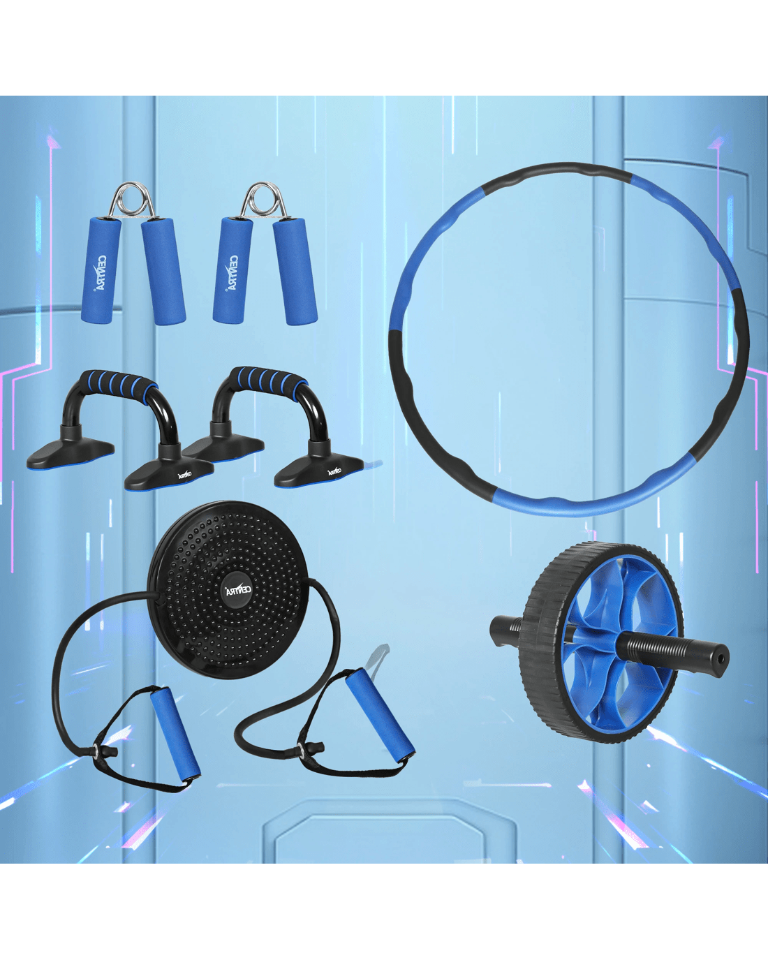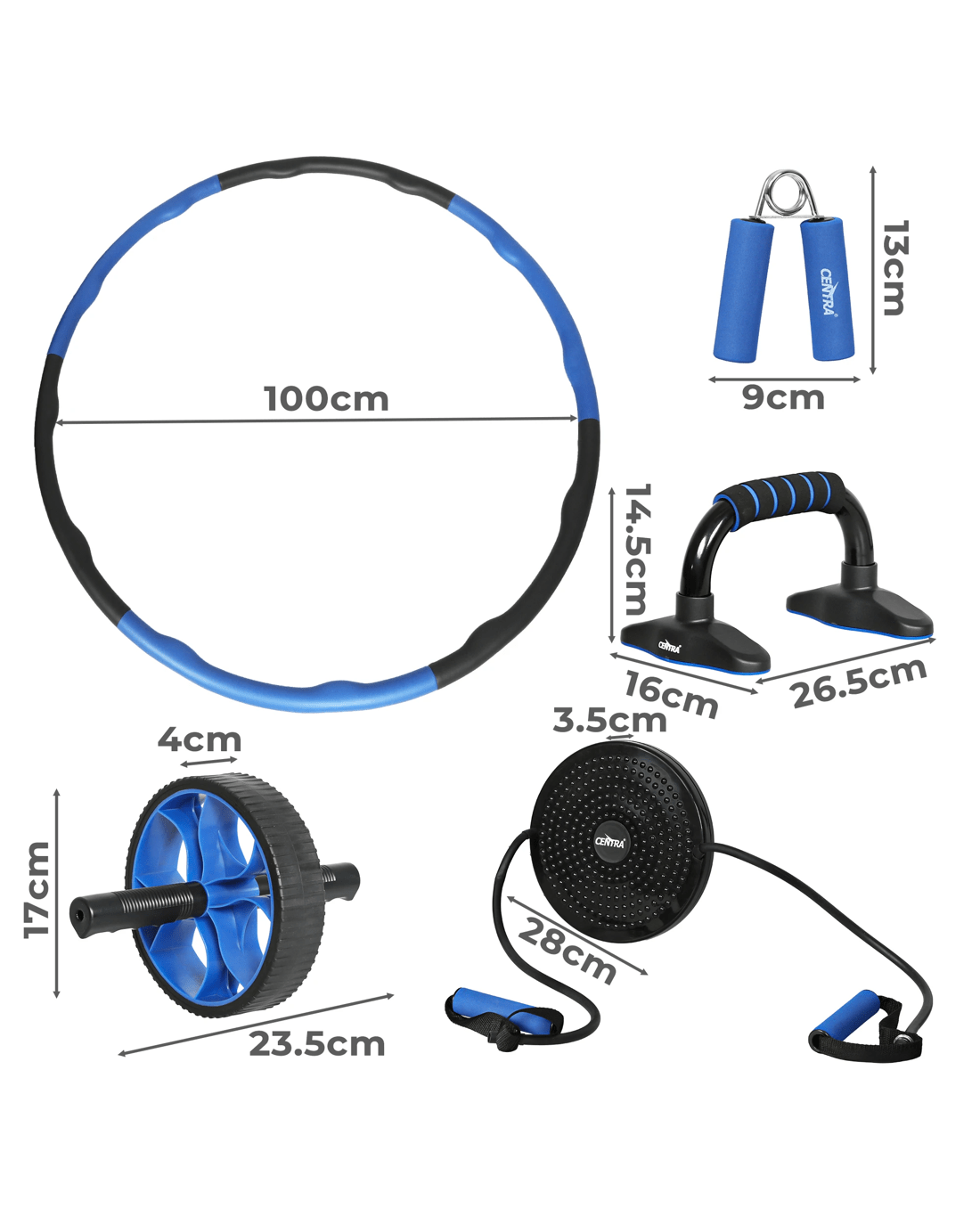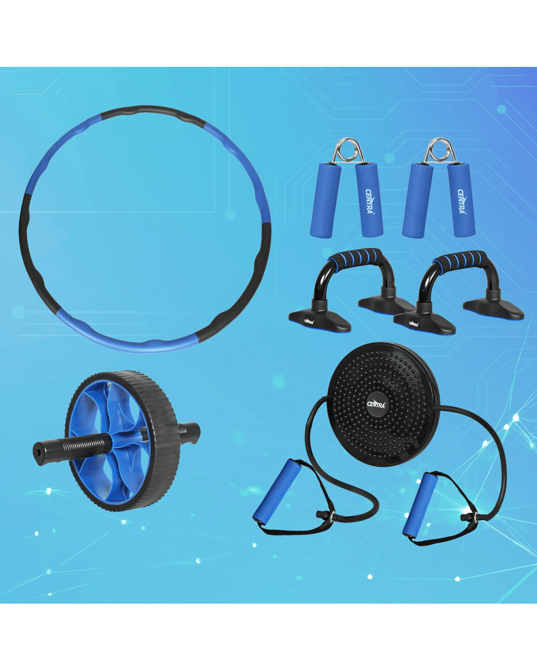 Sold by Sello ProductsCentra Exercise Roller Wheels Set Hula Hoop Push Up Bars Hand Grip Strengthener