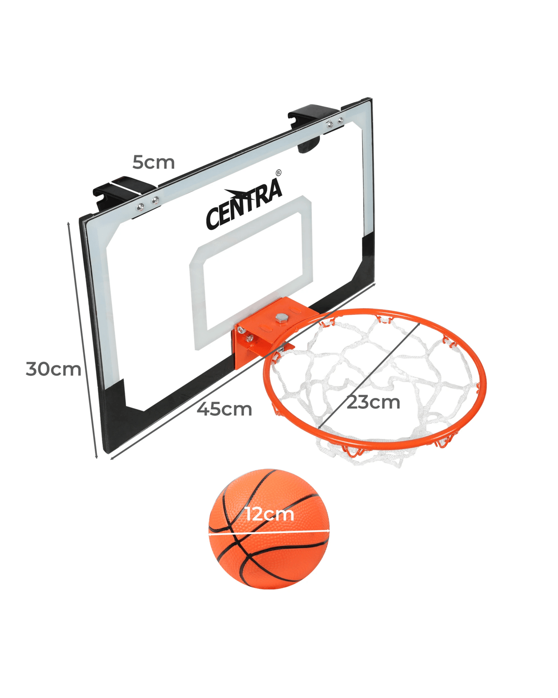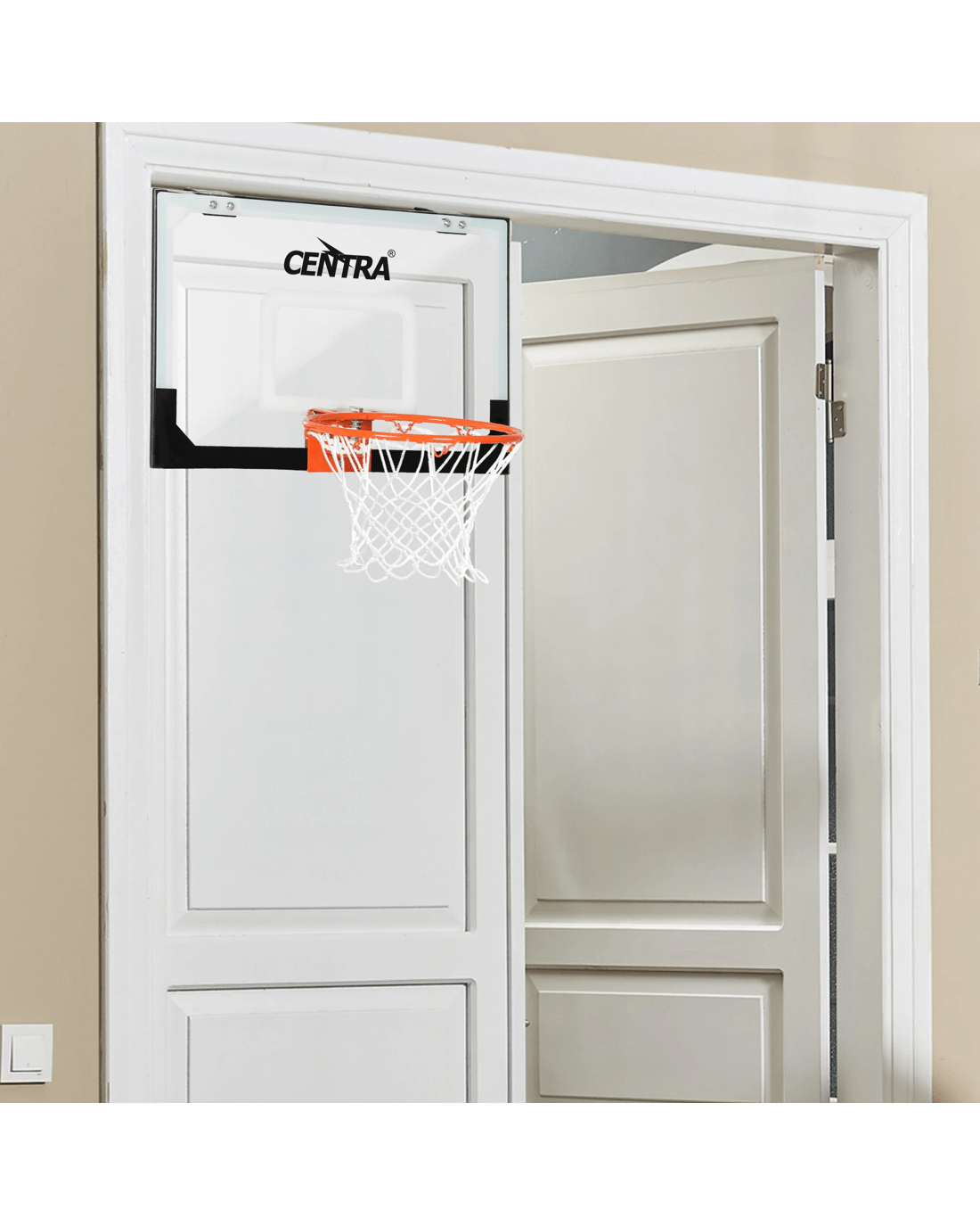 Just hook your Centra hanging basketball hoop over the back of the door. This small basketball hoop is sturdy enough for light dunks but still safe for children. Throw the included ball or use your own with this reliable basketball hoop and backboard combo.