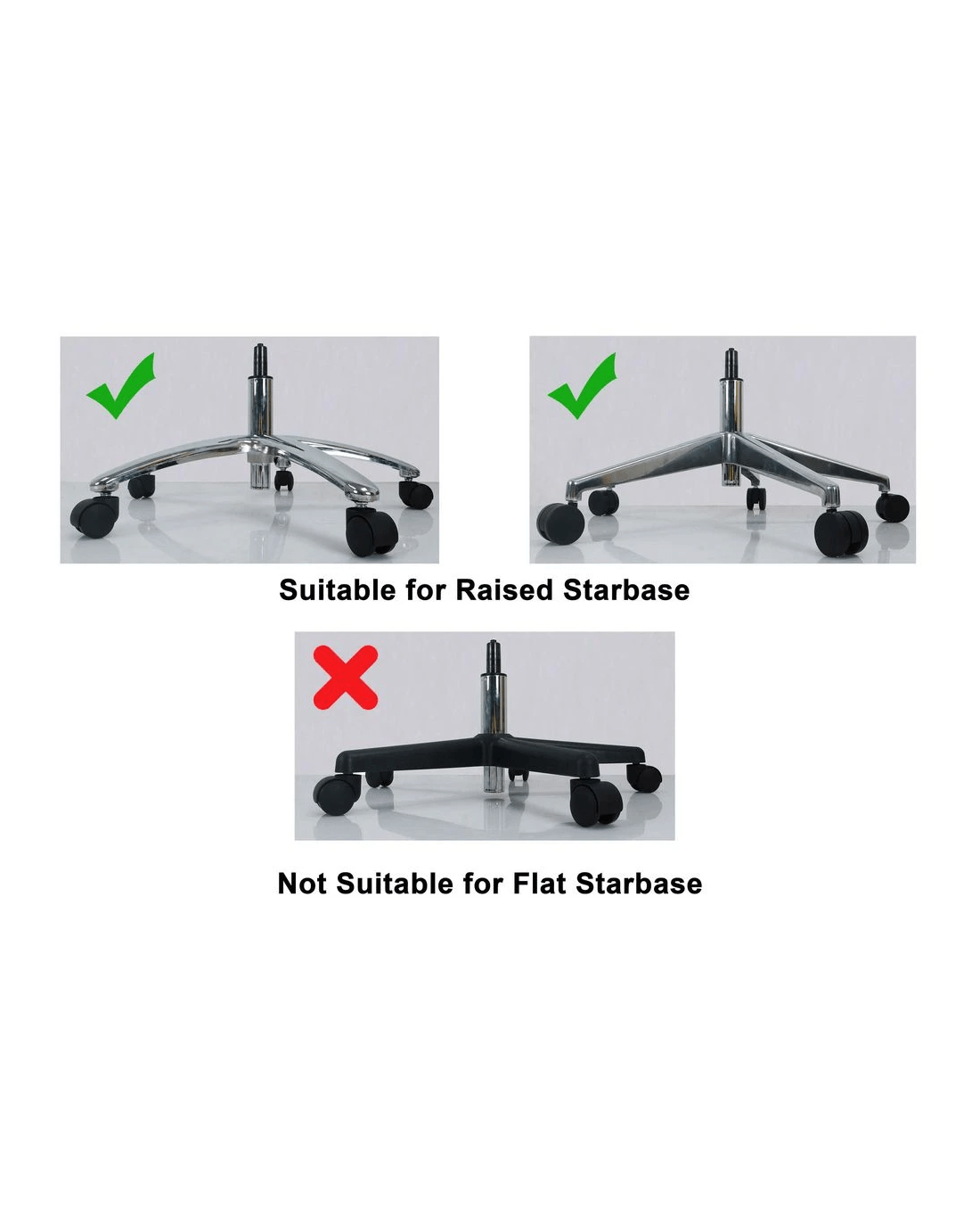- This gas lift is suitable for chairs with raised star bases only.