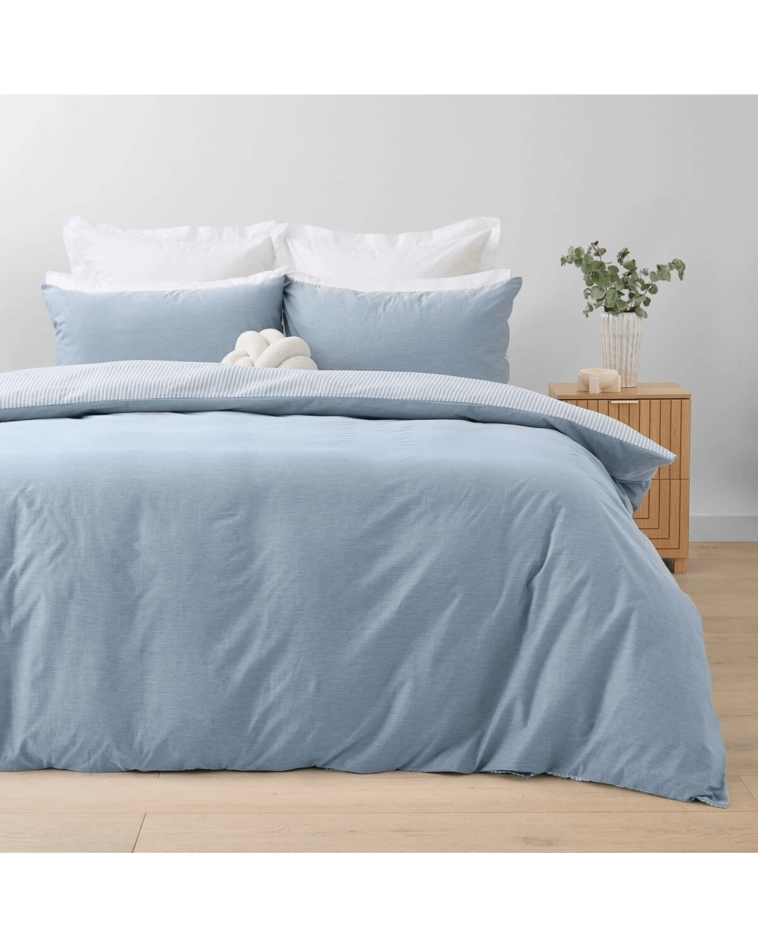 Add a fresh look to your bedroom with this Chambray Cotton Rich Reversible Quilt Cover Set.