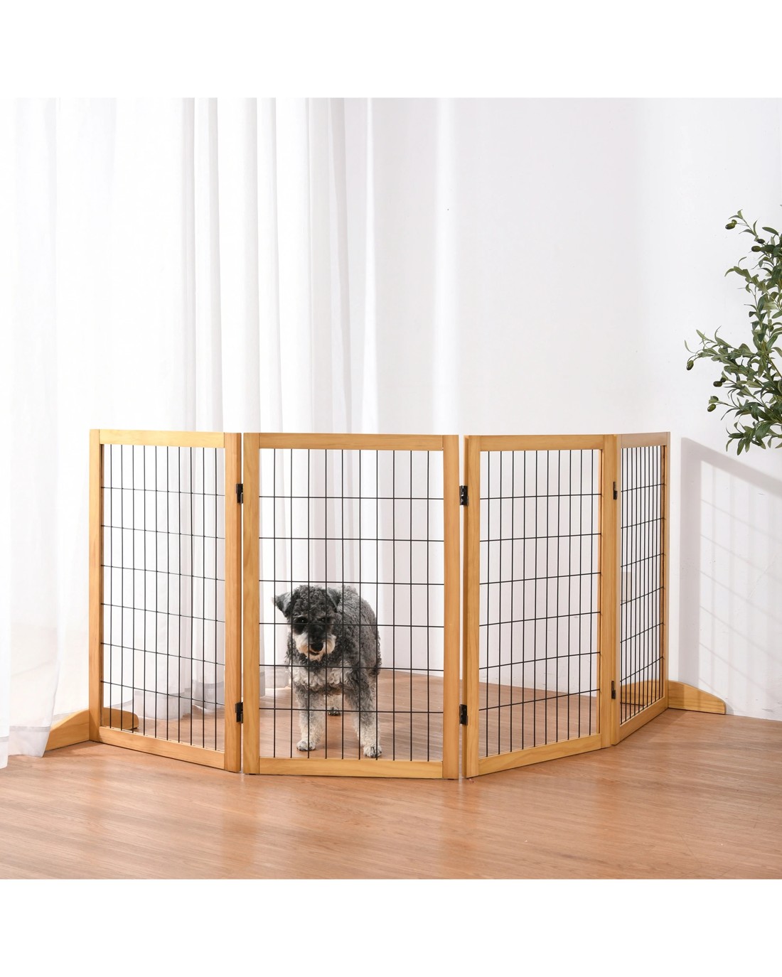 Charlie's Nature Freestanding Wood/Metal Pet Gate Natural Pinewood 4 Panel - Natural and Black