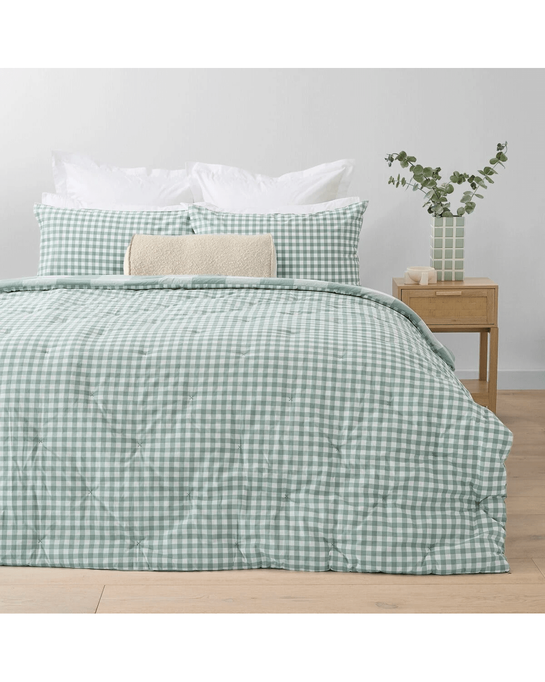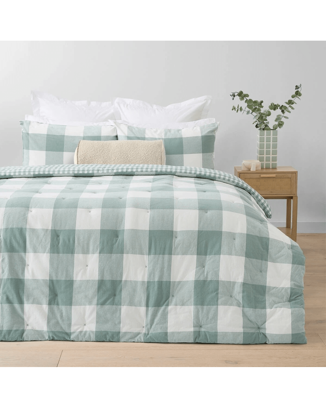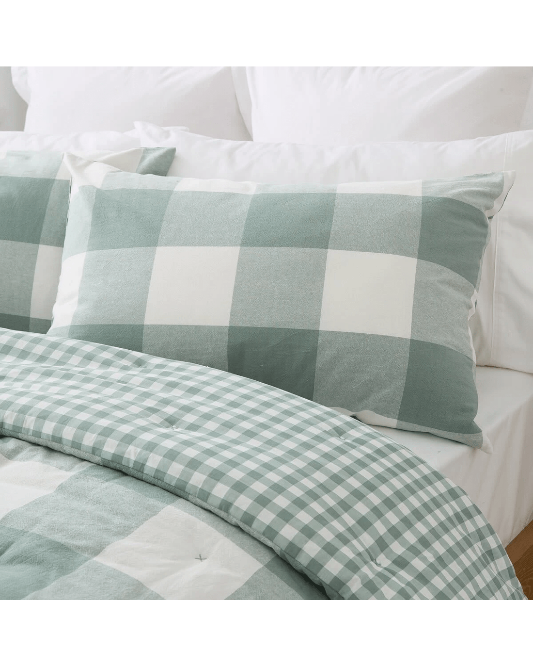Sold by KmartCheck Cotton Cover Reversible Comforter Set - King Bed, Green and White