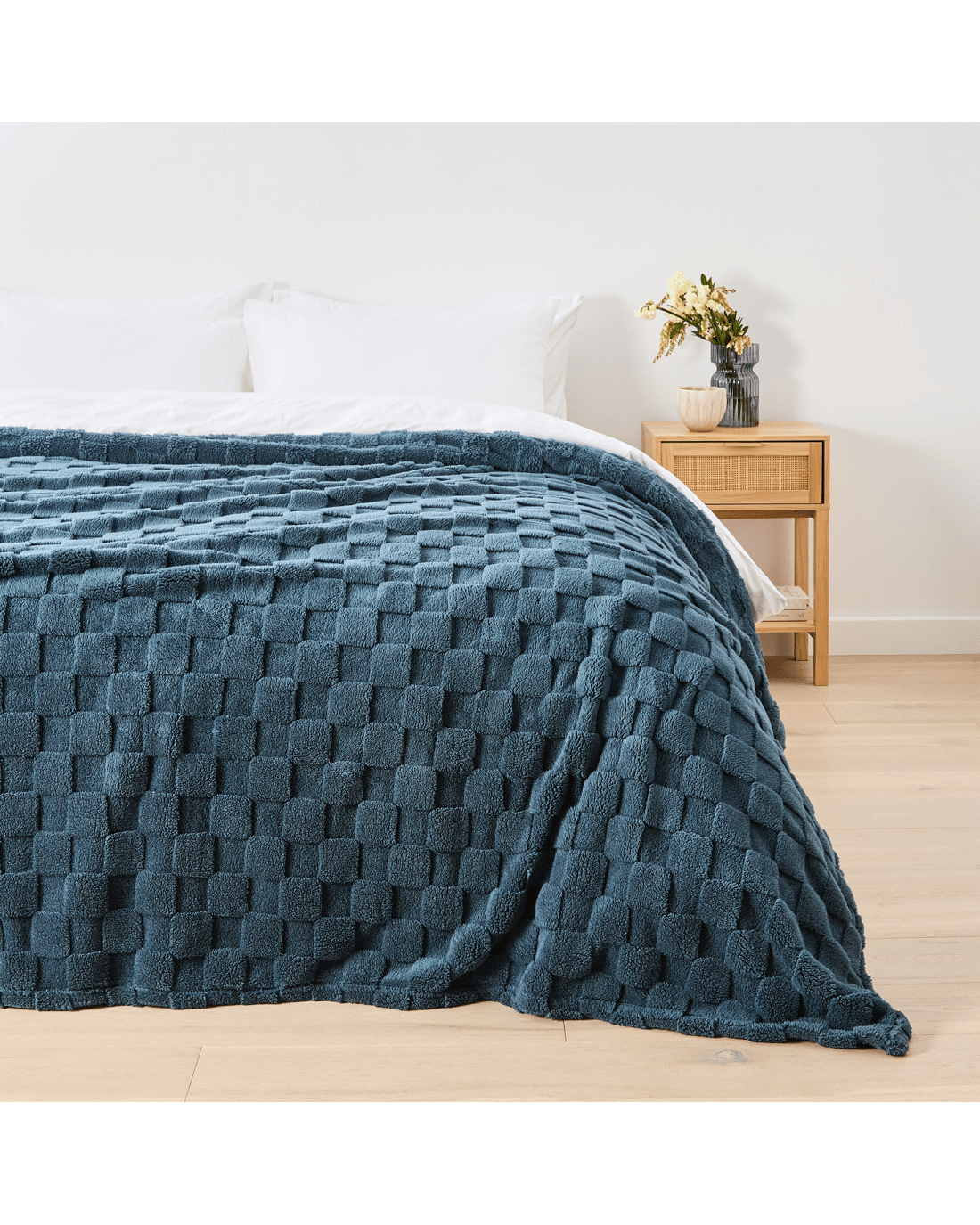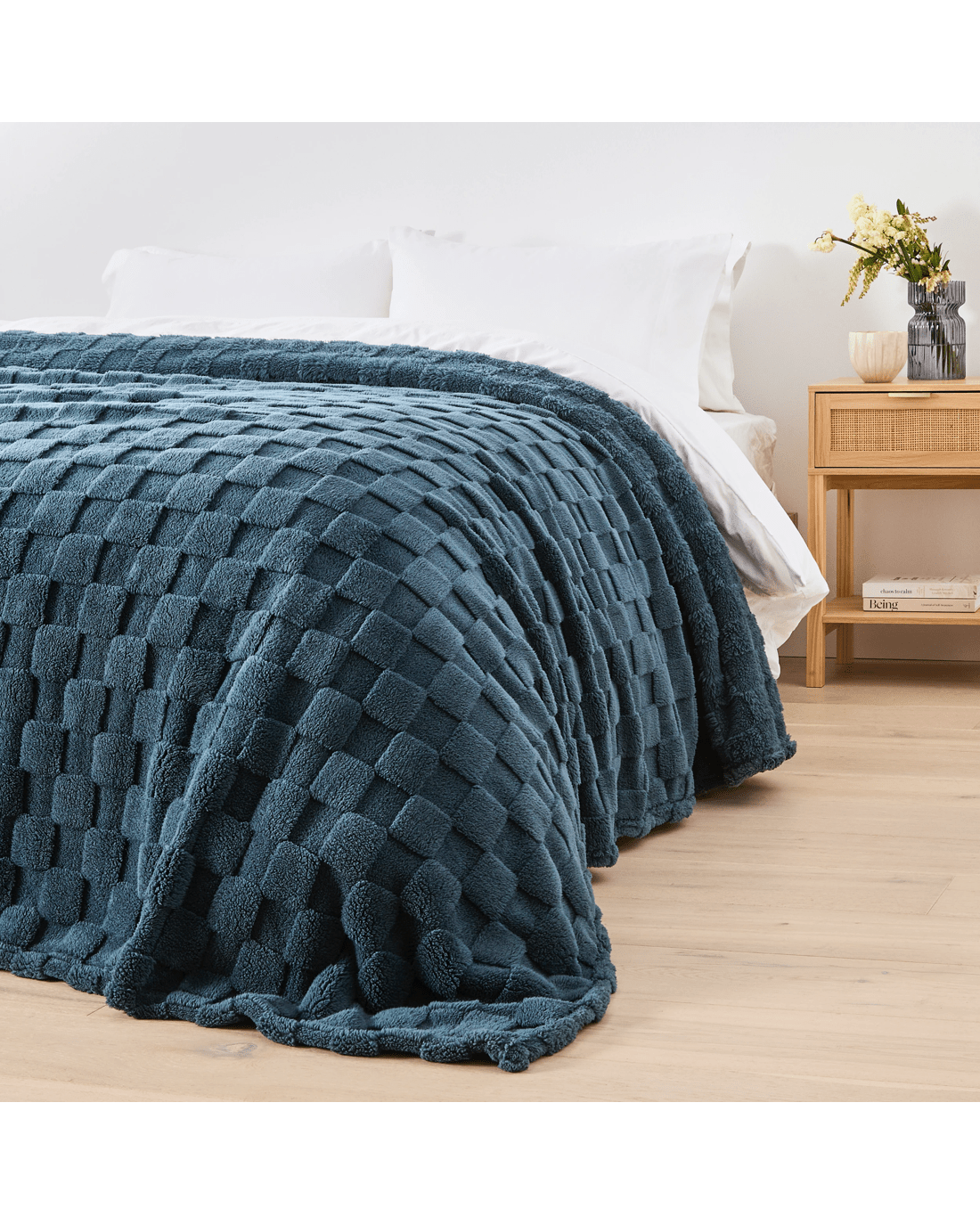 Check Jacquard Blanket - Queen/King Bed, Navy