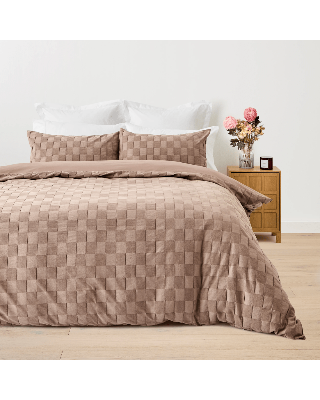Sold by KmartCheck Stonewashed Australian Grown Cotton Quilt Cover Set - King Bed, Mocha