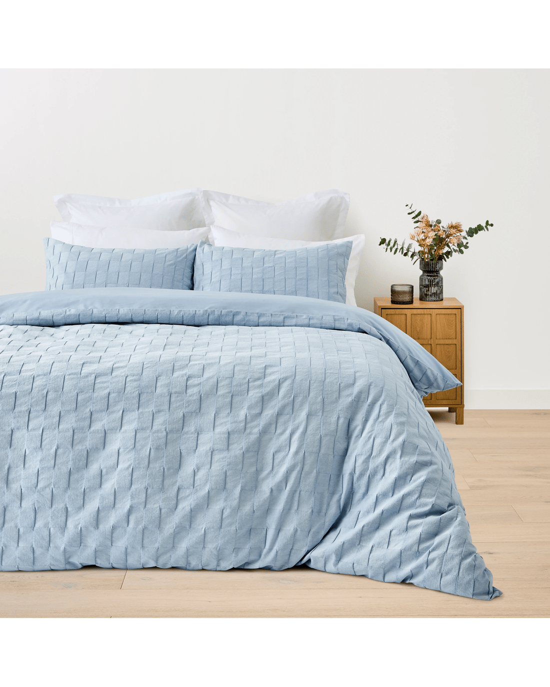 Sold by KmartCheck Stonewashed Australian Grown Cotton Quilt Cover Set - Queen Bed, Blue