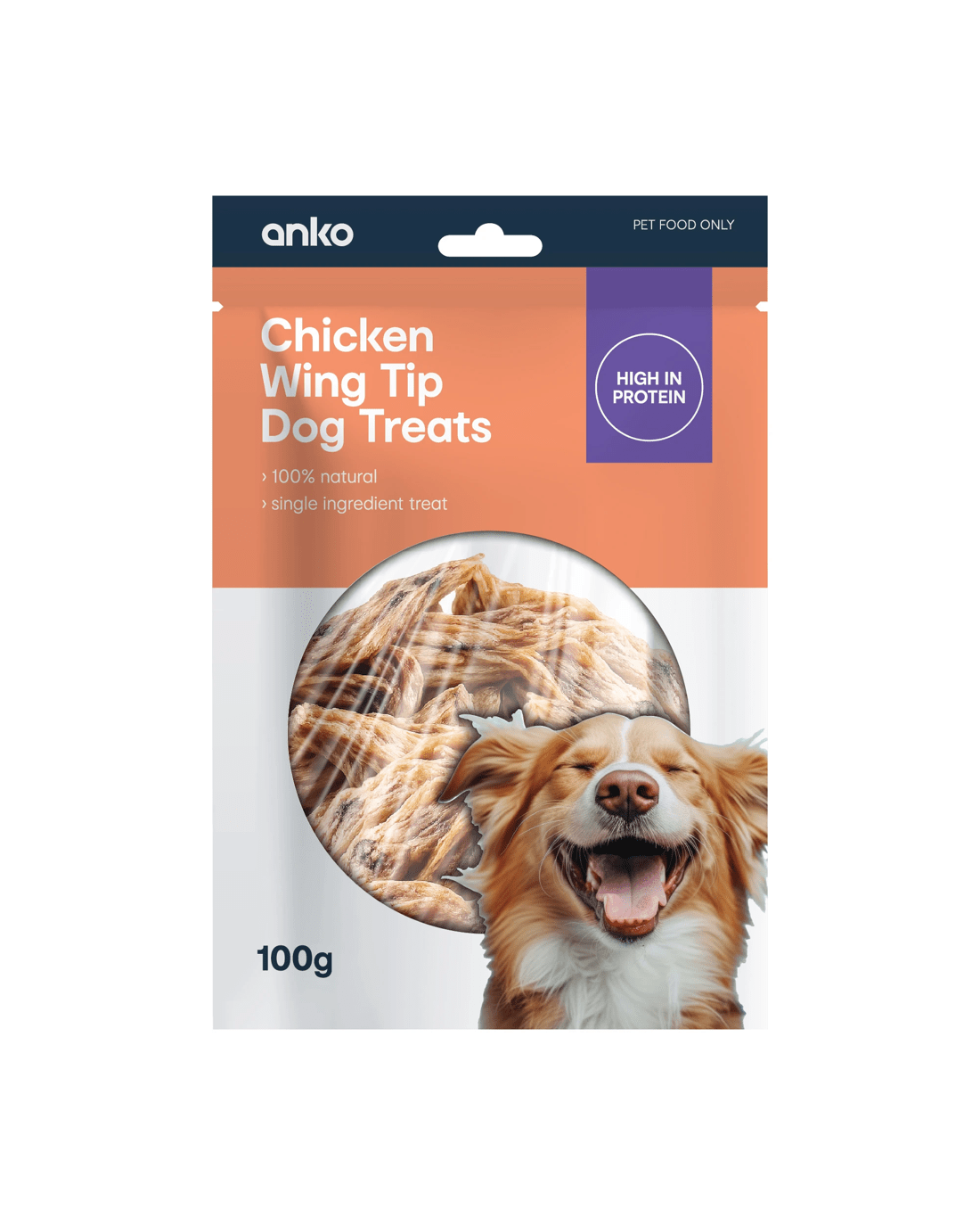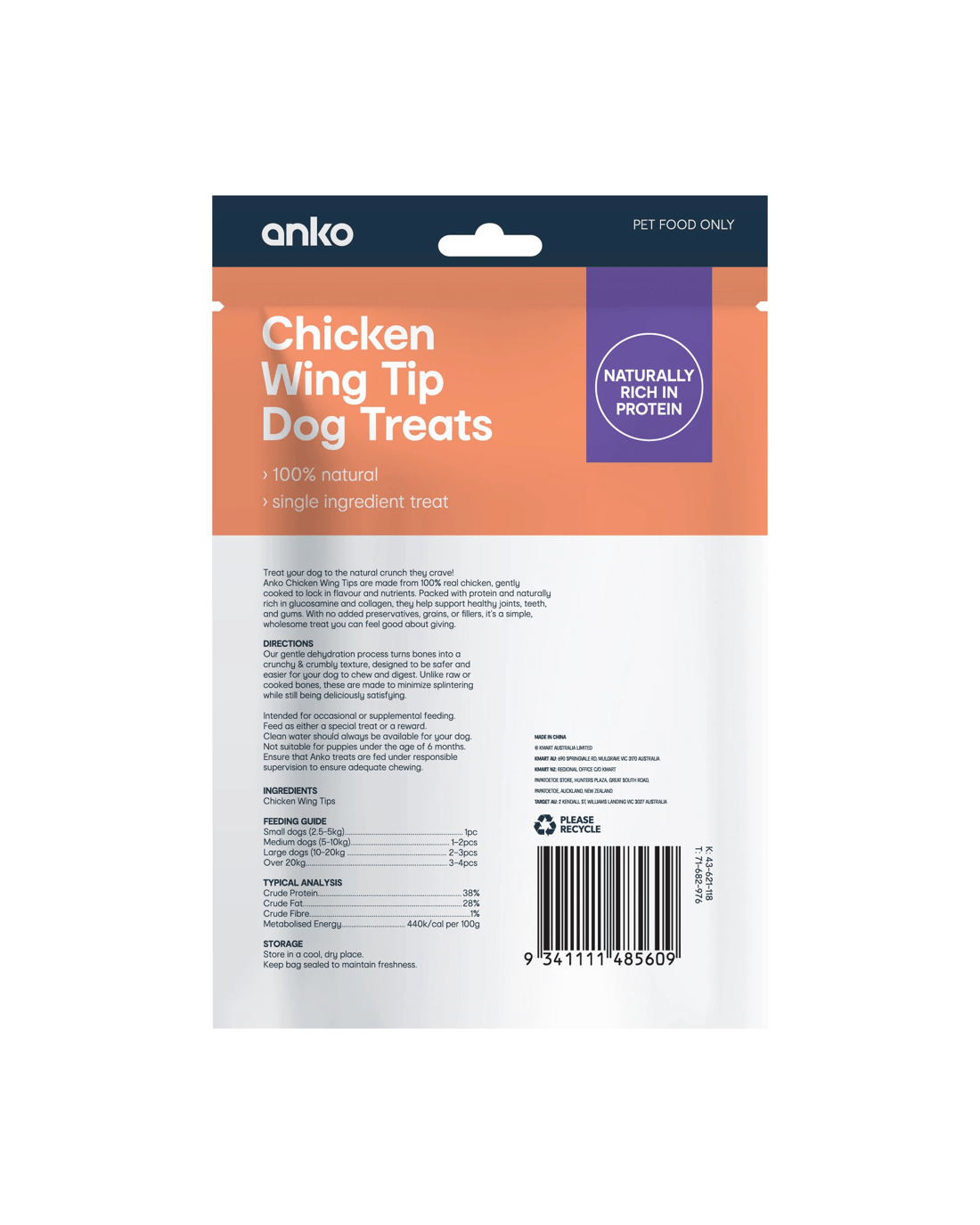 Treat your dog to the natural crunch they crave! Anko Chicken Wing Tips are made from 100% real chicken, gently cooked to lock in flavour and nutrients. Packed with protein and naturally rich in glucosamine and collagen, they help support healthy joints, teeth, and gums. With no added preservatives, grains, or fillers, it’s a simple, wholesome treat you can feel good about giving.