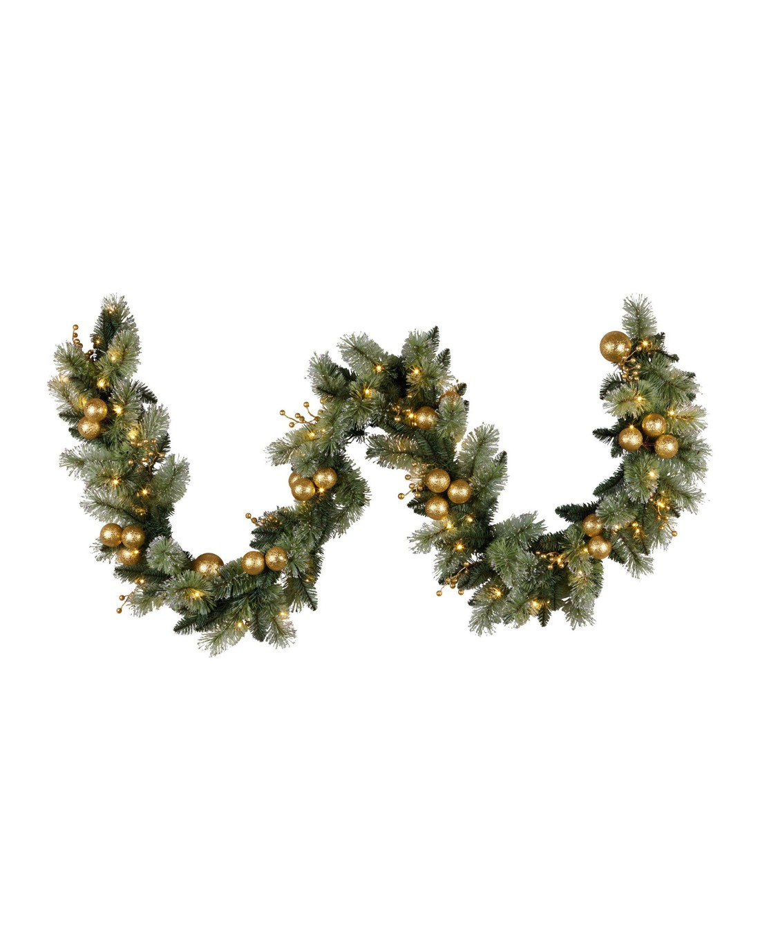 Christabelle 2.7m Christmas Garland With Gold Baubles And Led Lights Mantle Decoration Ornament