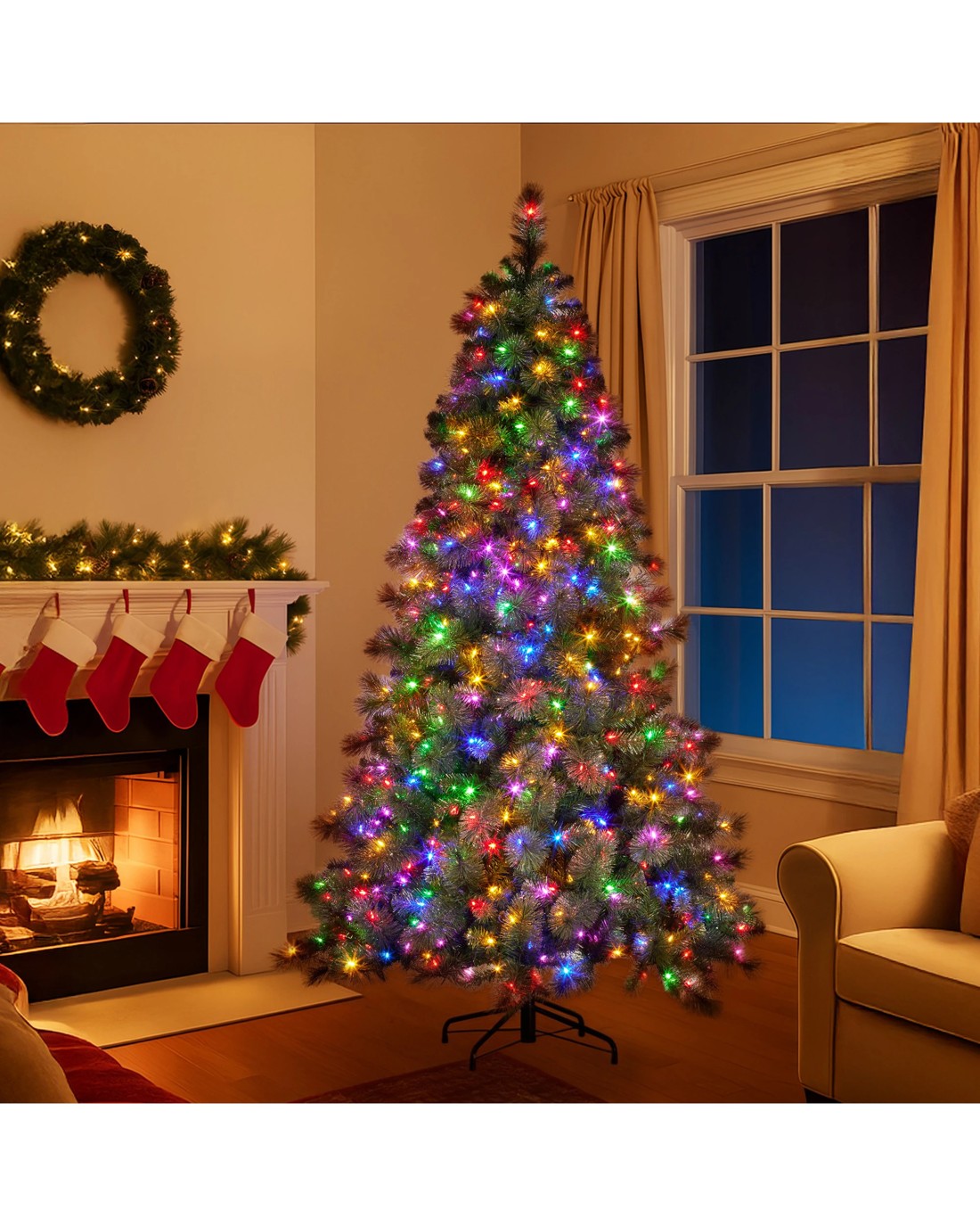 Sold by Klika GroupChristabelle 7.5ft Christmas Tree Glittery Gold Pine 650 Led Multi-functional Lights Xmas Decor