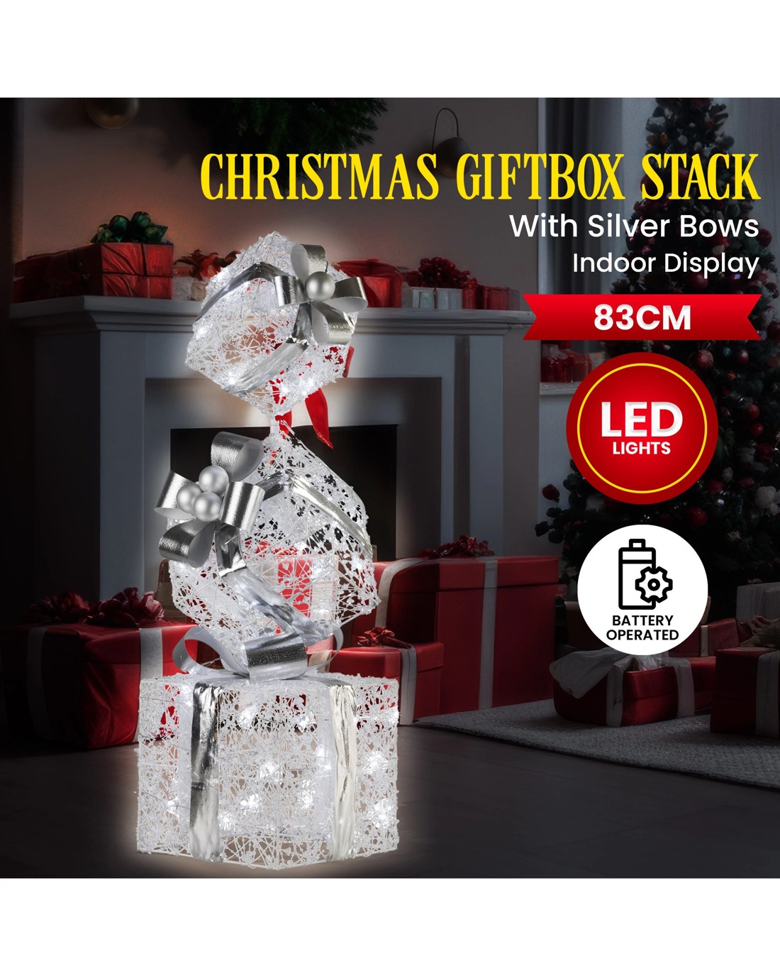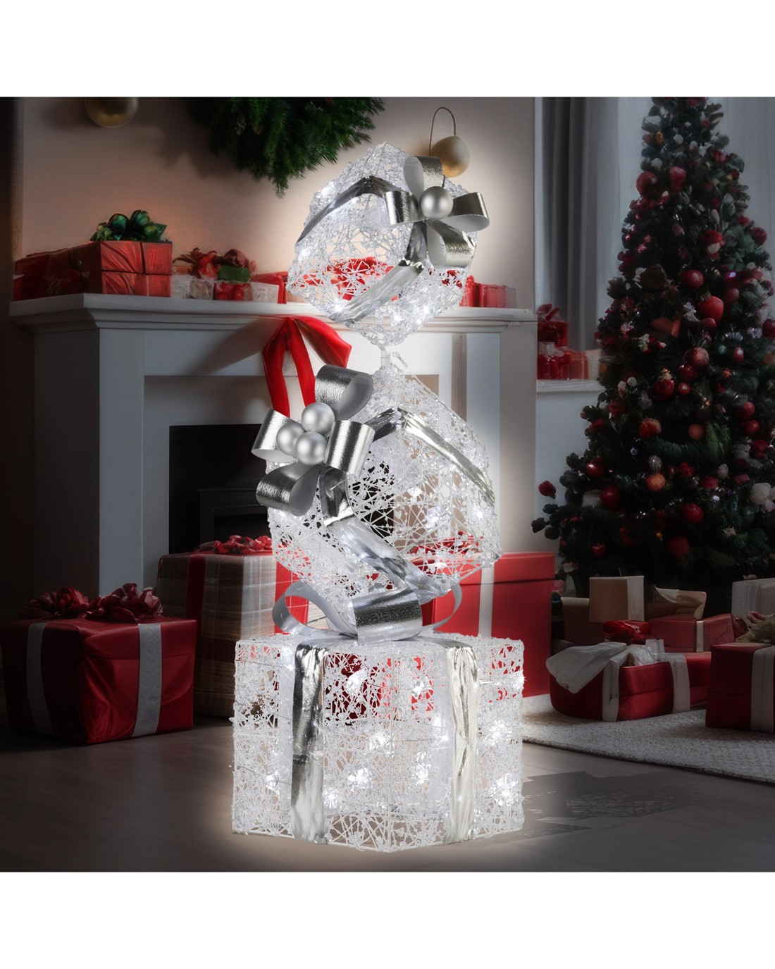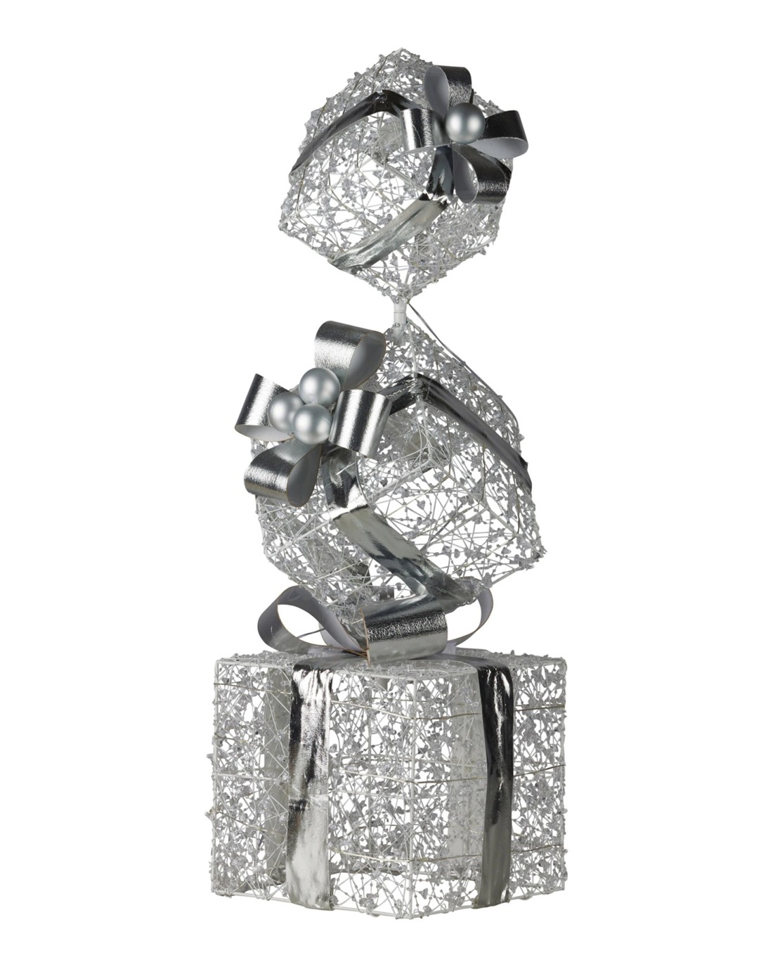 Sold by Klika GroupChristabelle 83cm Triple Christmas Silver Giftbox Stack Display With Lights
