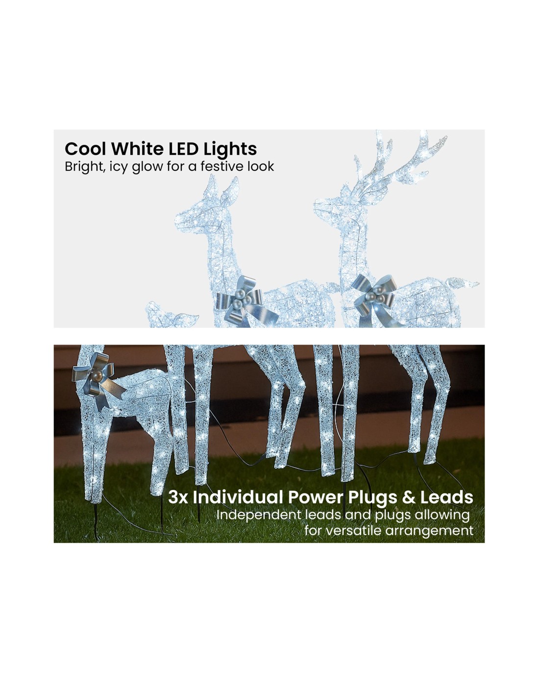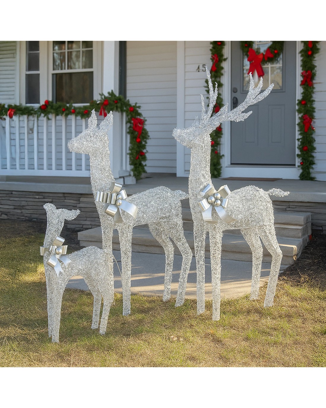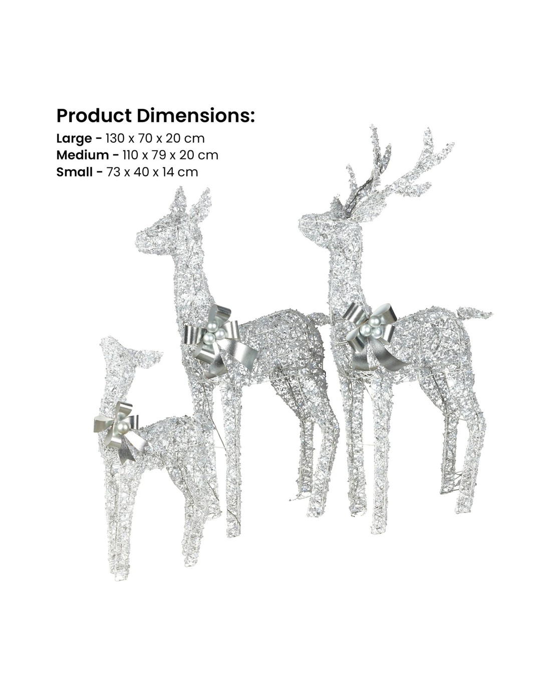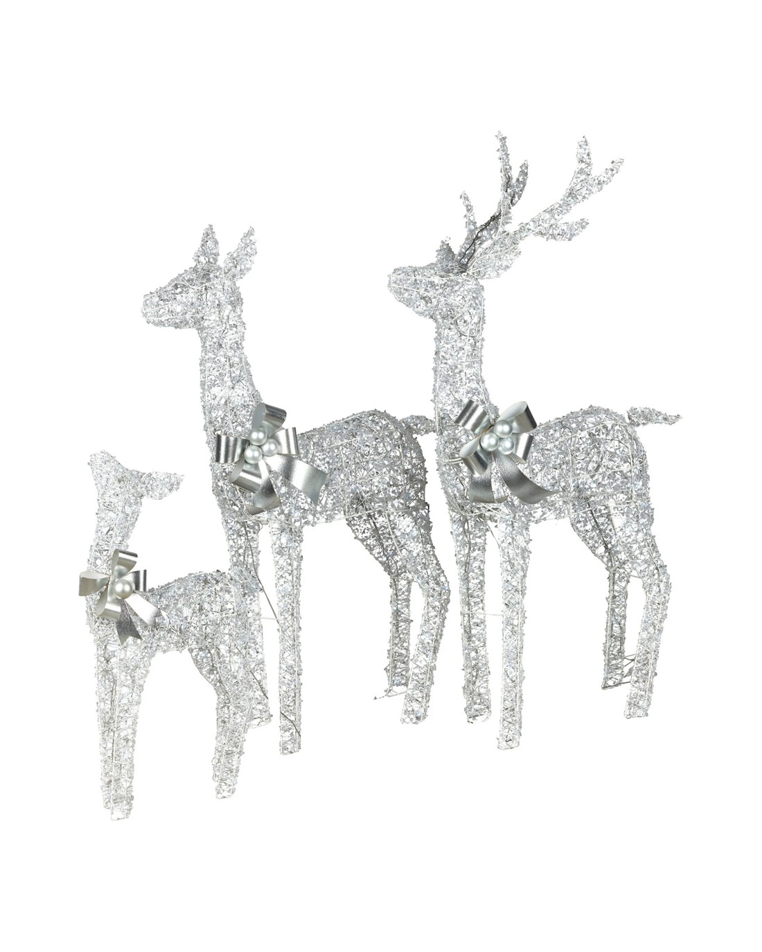 Sold by Klika GroupChristabelle Christmas Reindeer Display Set 3 Indoor Outdoor Decorations Acrylic Beads Cool White Led Lights Silver