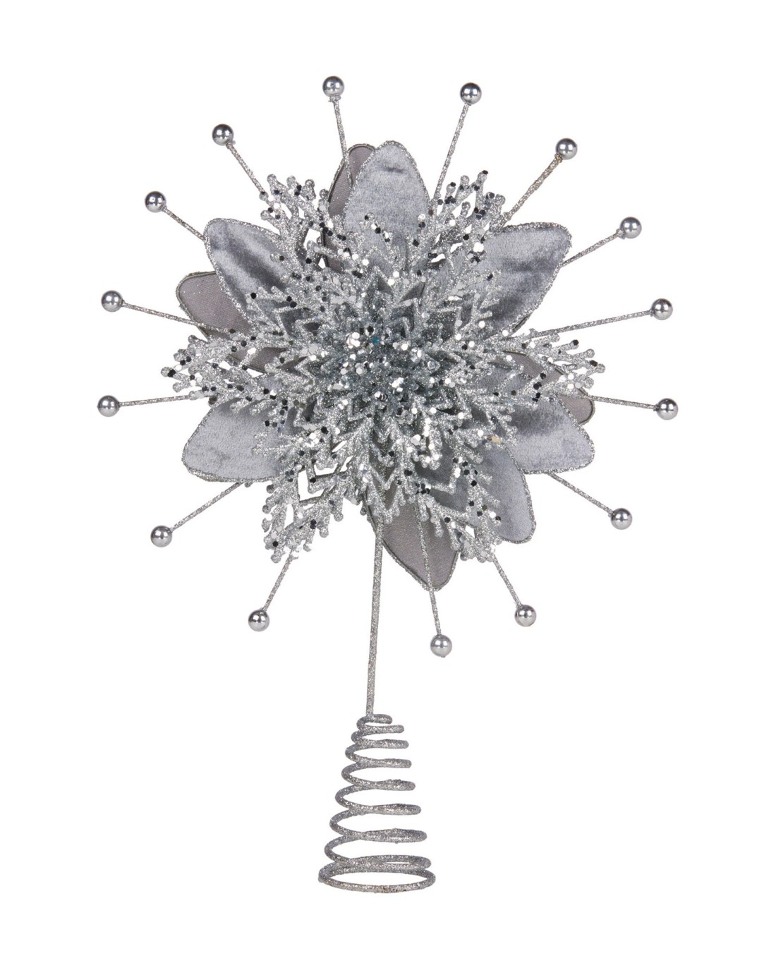 Christabelle Christmas Tree Topper Poinsettia Decoration Ornament Shimmering Silver Glittered Petals