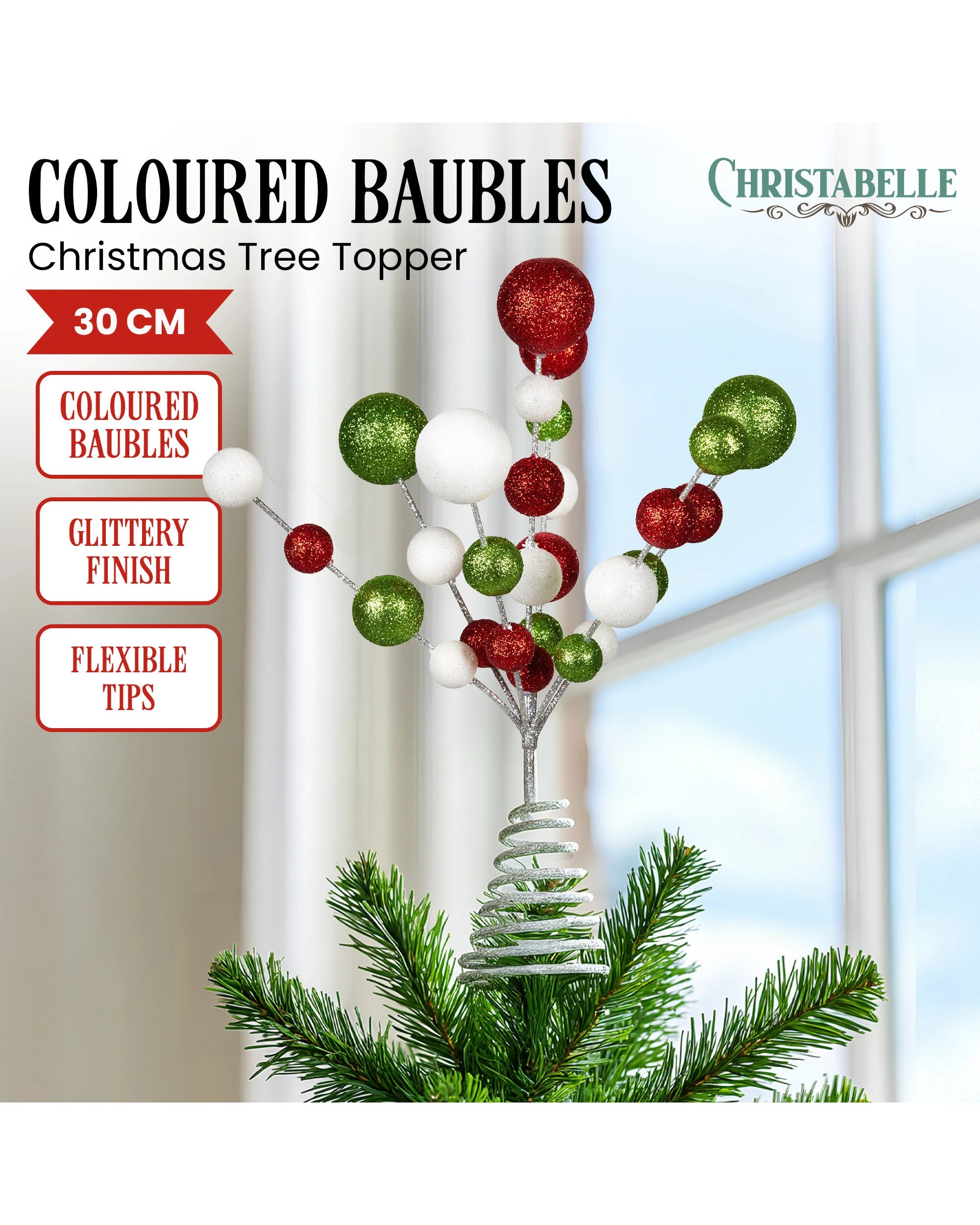 Christabelle Colourful Baubles Christmas Tree Topper With Festive Glitter Finish Decoration Ornament