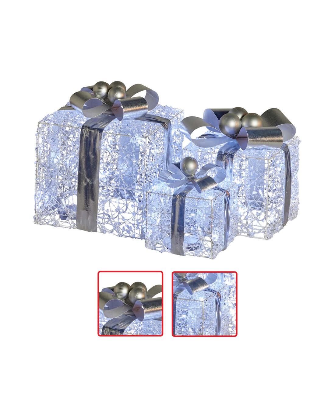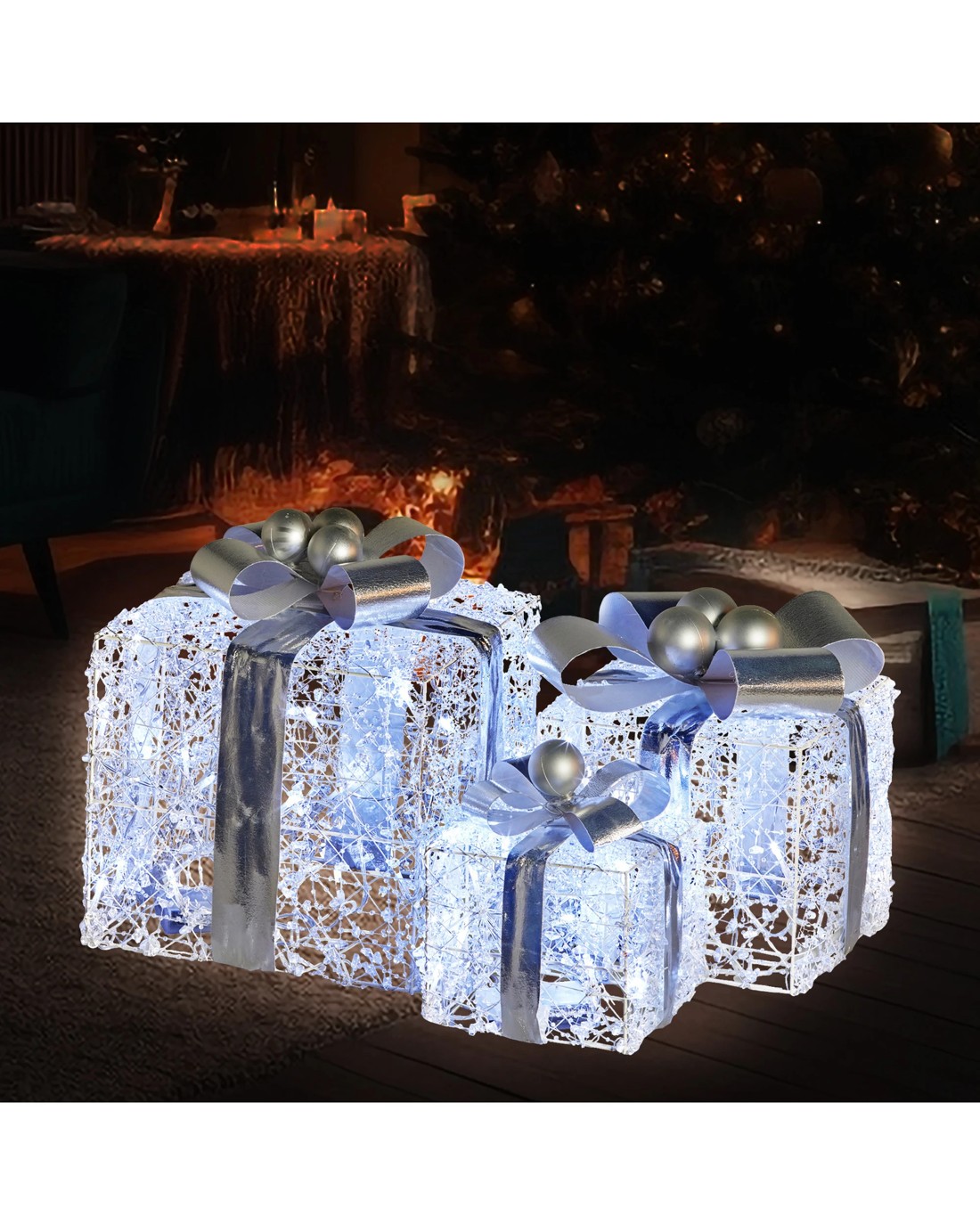 Sold by Klika GroupChristabelle Set Of 3 Christmas Gift Boxes Display With Lights Jewelled Wire And Silver Bows