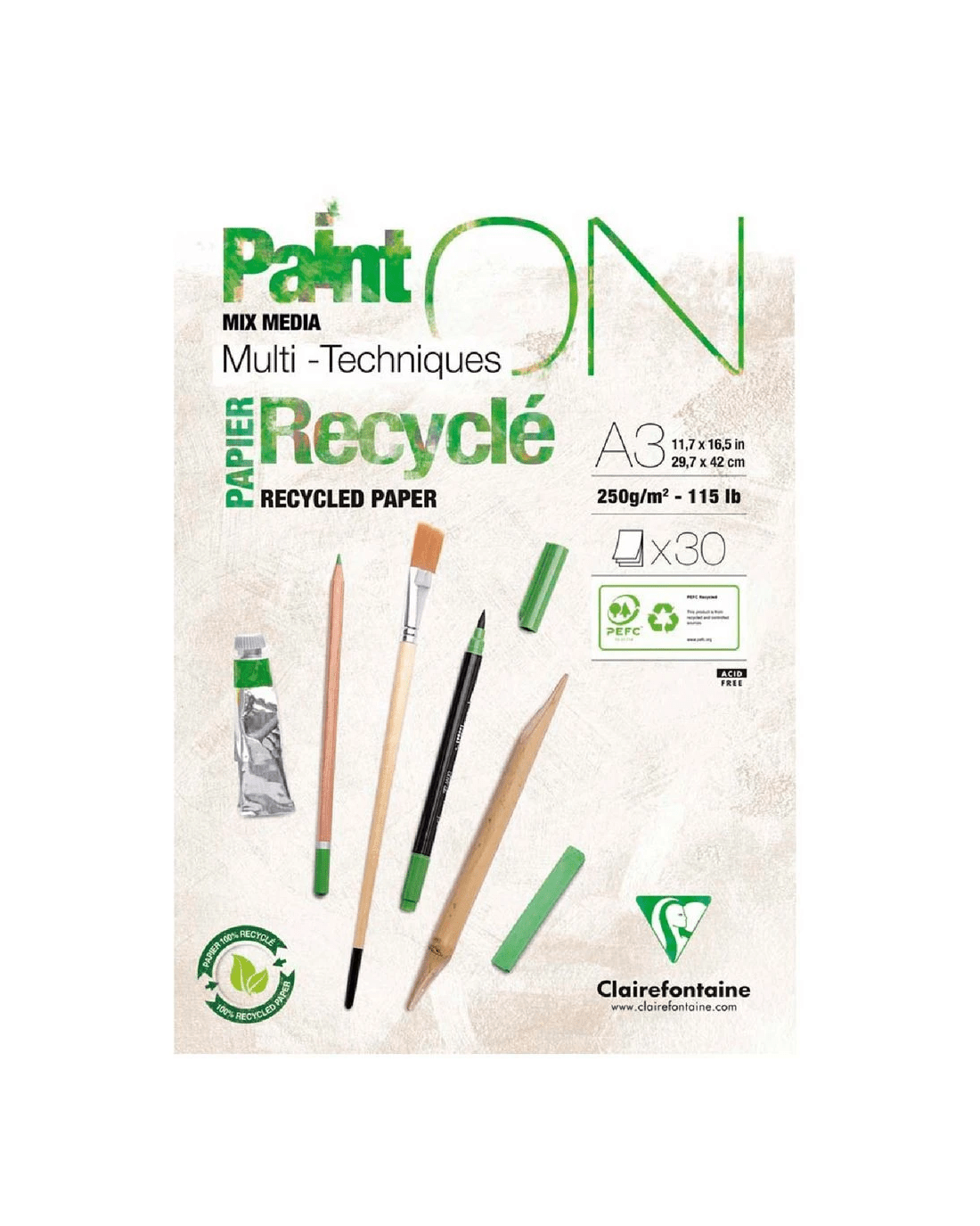 Clairefontaine PaintON A3 Recycled Mixed Media Pad 30 Sheets