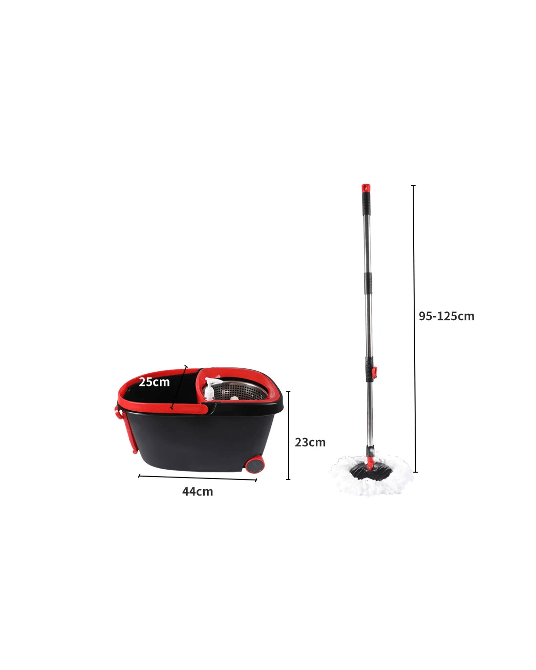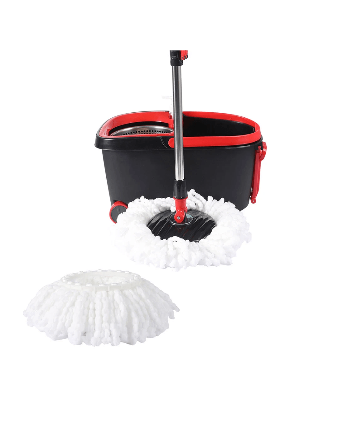 The dual-chamber bucket separates washing and drying, while the stainless steel wringer offers fast spin-drying. With an adjustable mop handle, built-in wheels, drain valve, and retractable handle, the Cleanflo Mop and Bucket Set is perfect for every household.