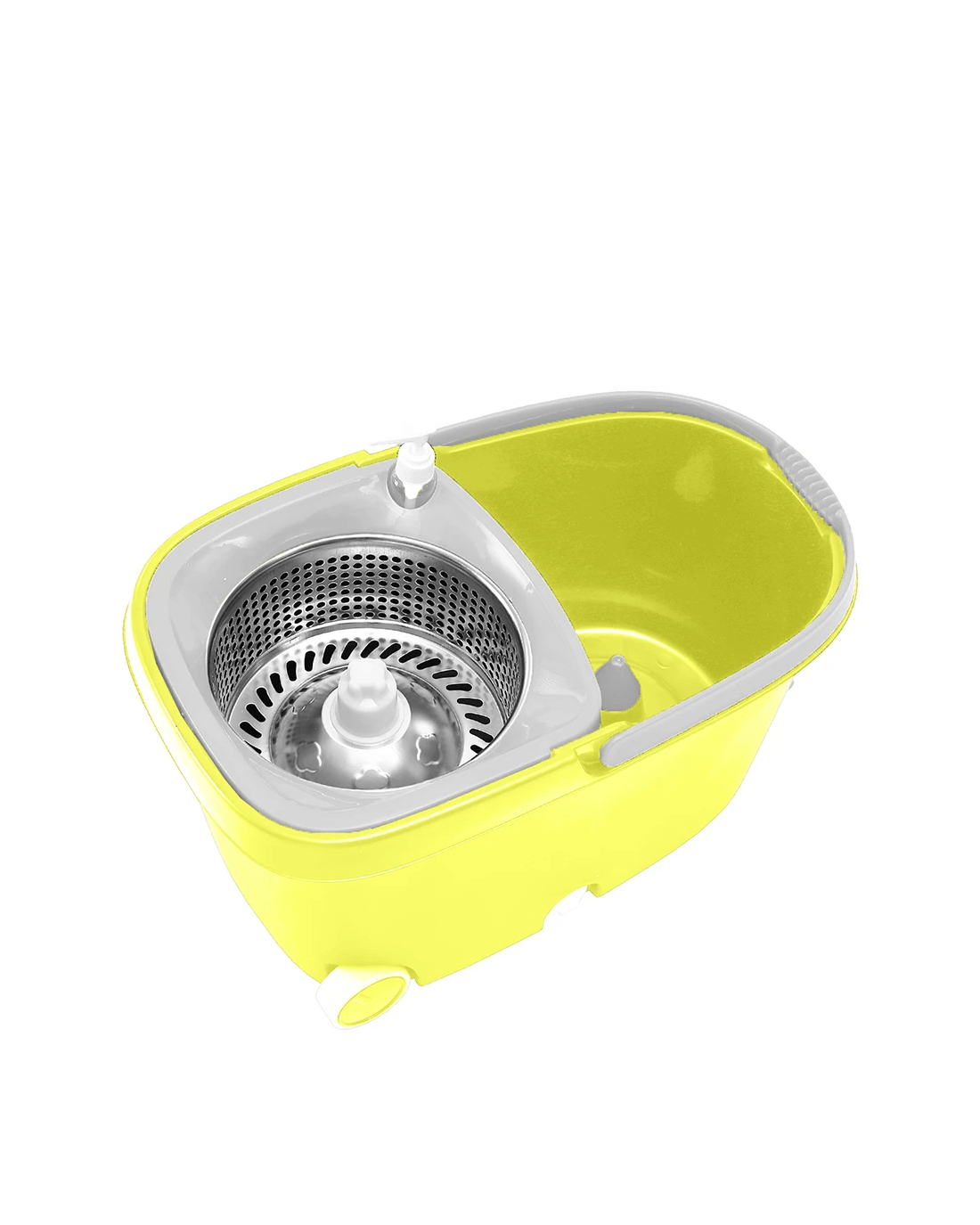 The dual-chamber bucket separates washing and drying, while the stainless steel wringer offers fast spin-drying. With an adjustable mop handle, built-in wheels, drain valve, and retractable handle, the Cleanflo Mop and Bucket Set is perfect for every household.