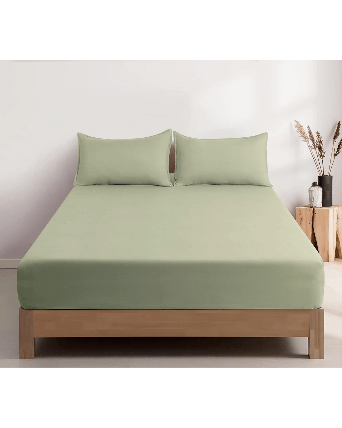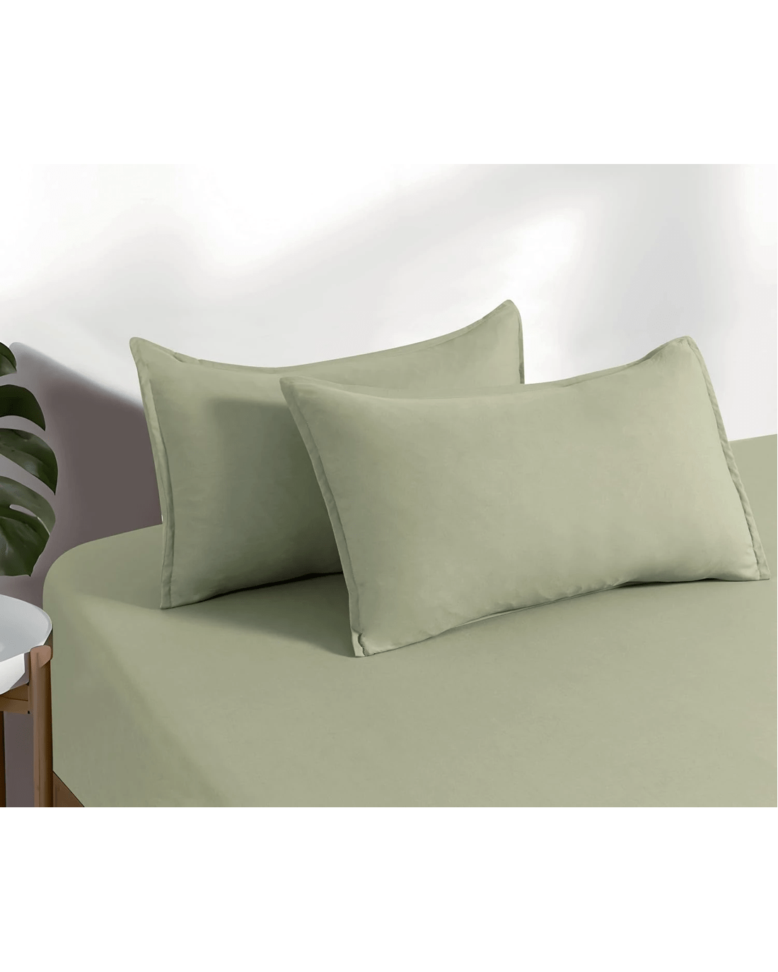 CleverPolly 100% Vintage Washed Microfibre Fitted Sheet Set - Eucalypt - Double Bed