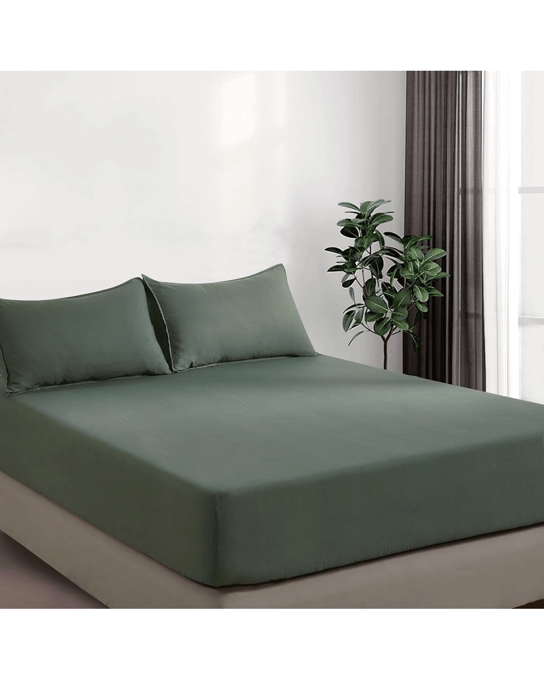 Sold by Gioia CasaCleverPolly 100% Vintage Washed Microfibre Fitted Sheet Set - Khaki Green - Single Bed