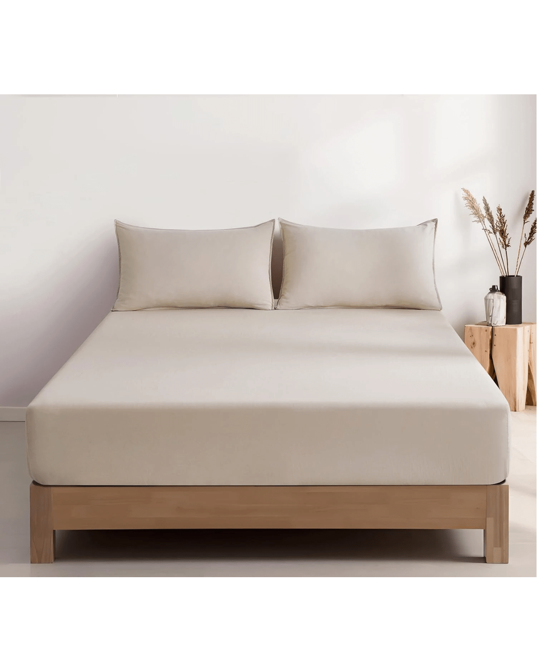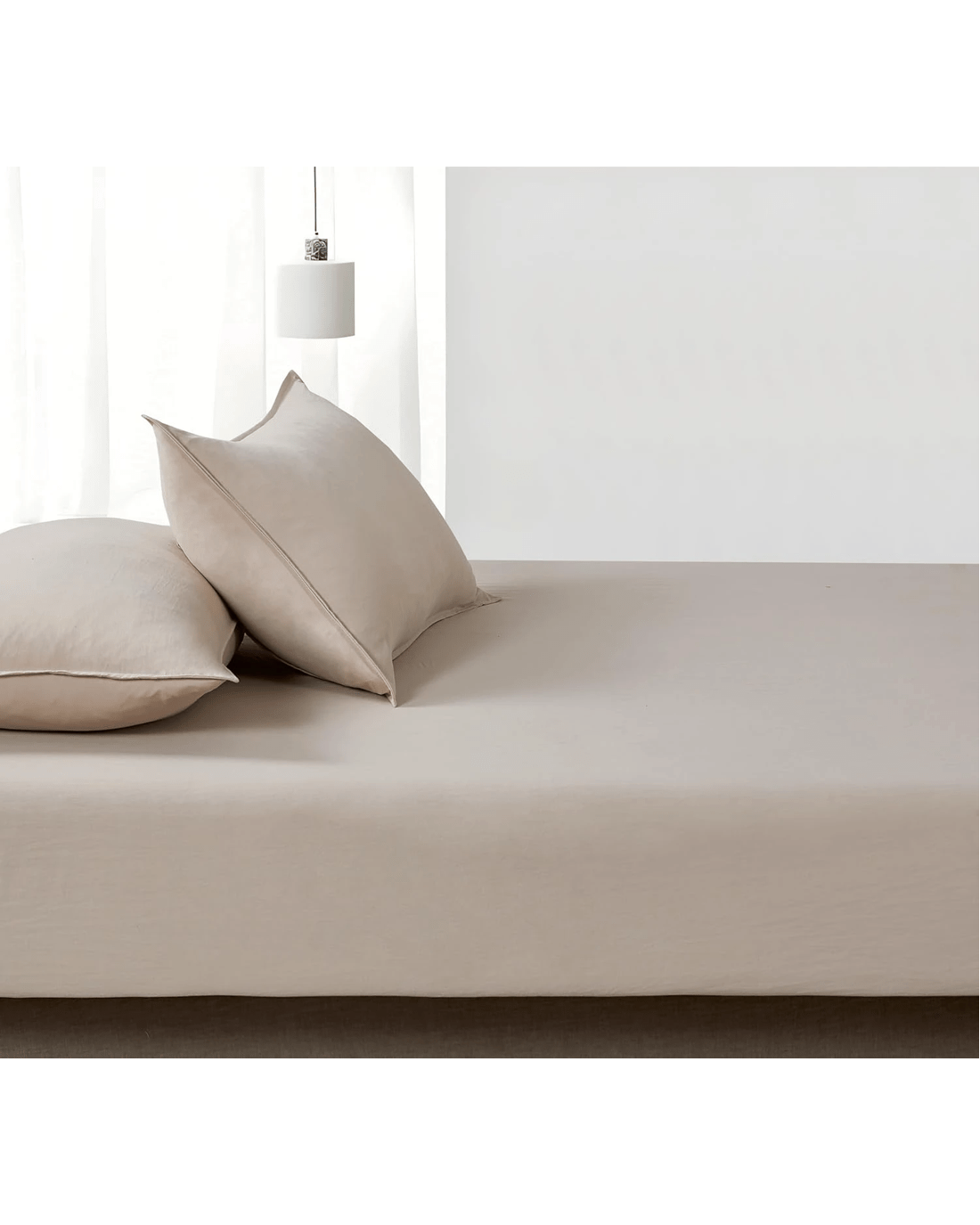 Sold by Gioia CasaCleverPolly 100% Vintage Washed Microfibre Fitted Sheet Set - Linen - Double Bed