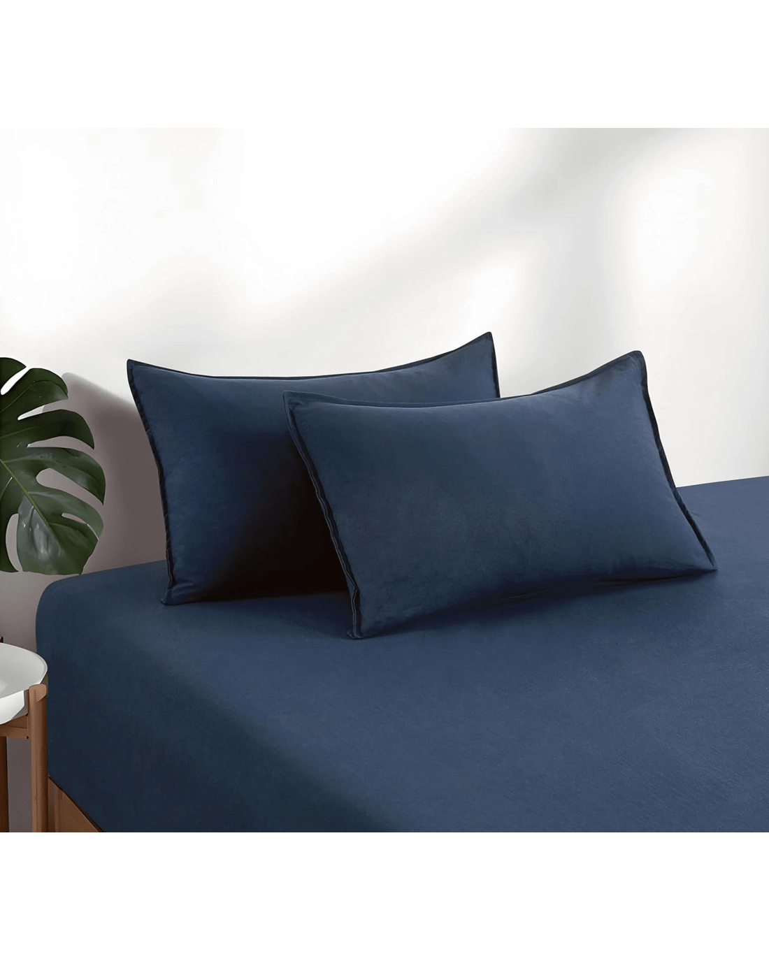 CleverPolly 100% Vintage Washed Microfibre Fitted Sheet Set - Navy Blue - King Bed