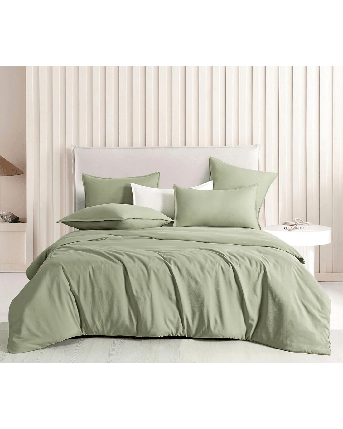 CleverPolly 100% Vintage Washed Microfibre Quilt Cover Set - Eucalypt - Super King Bed
