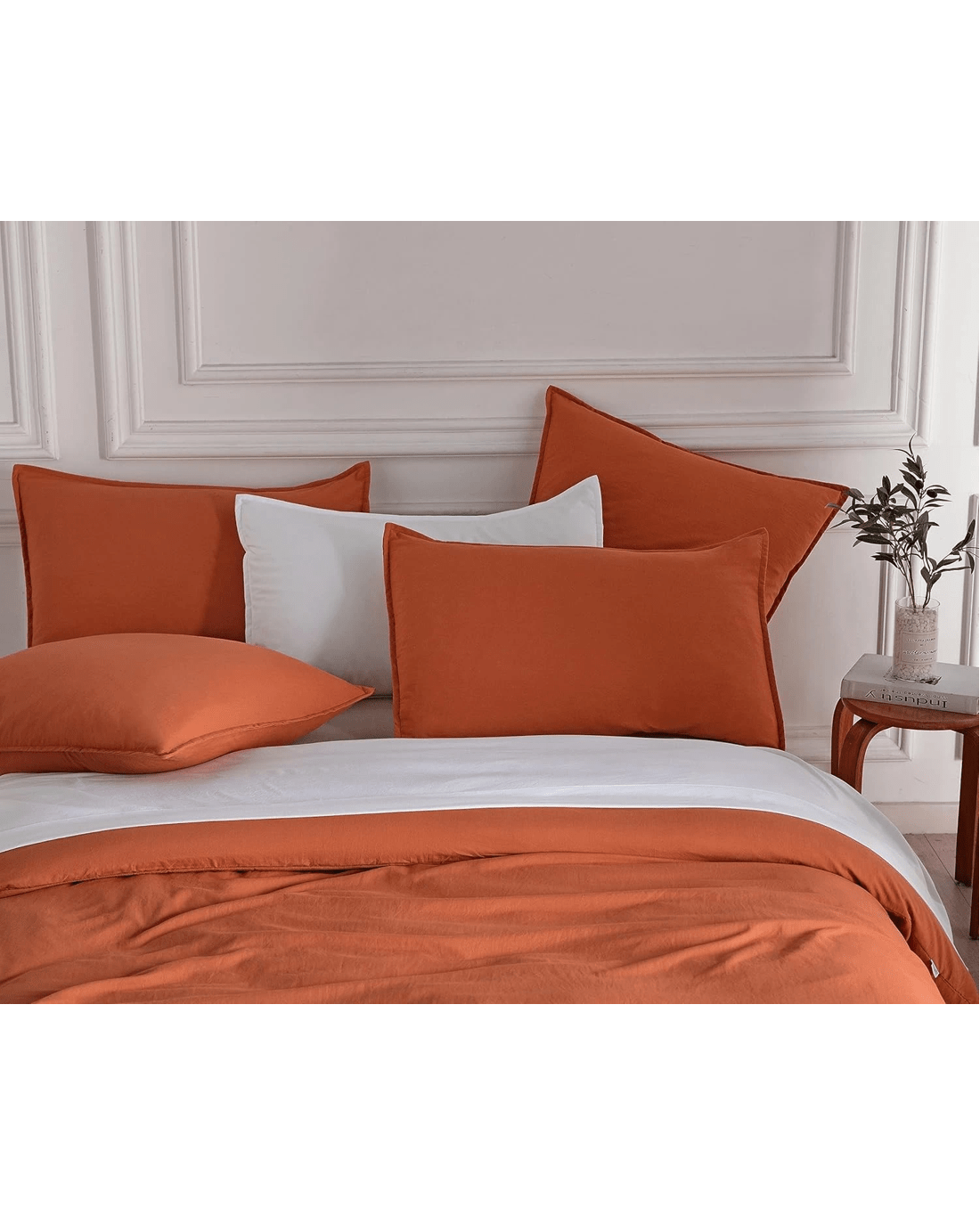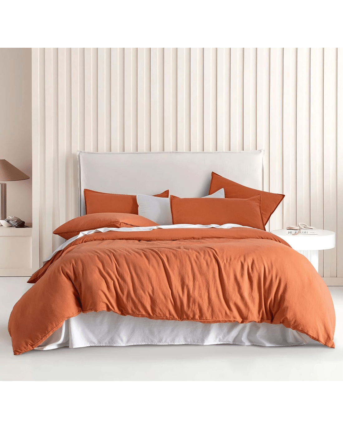 CleverPolly 100% Vintage Washed Microfibre Quilt Cover Set - Terracotta - Single Bed