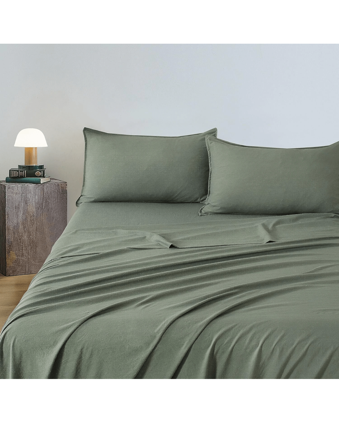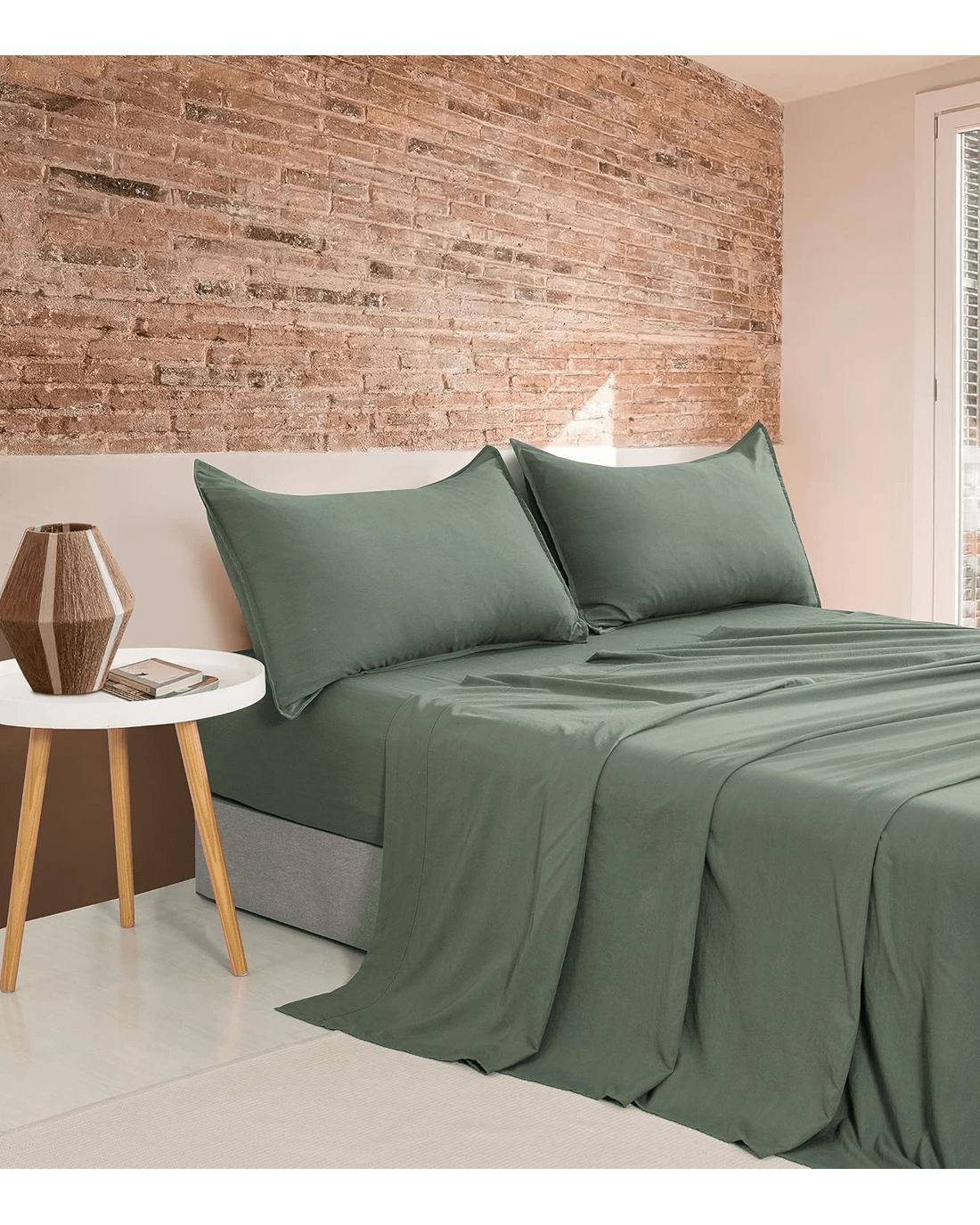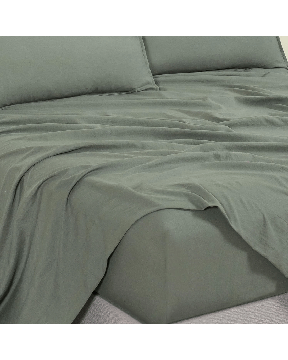 Sold by Gioia CasaCleverPolly 100% Vintage Washed Microfibre Sheet Set - Khaki Green - Super King Bed
