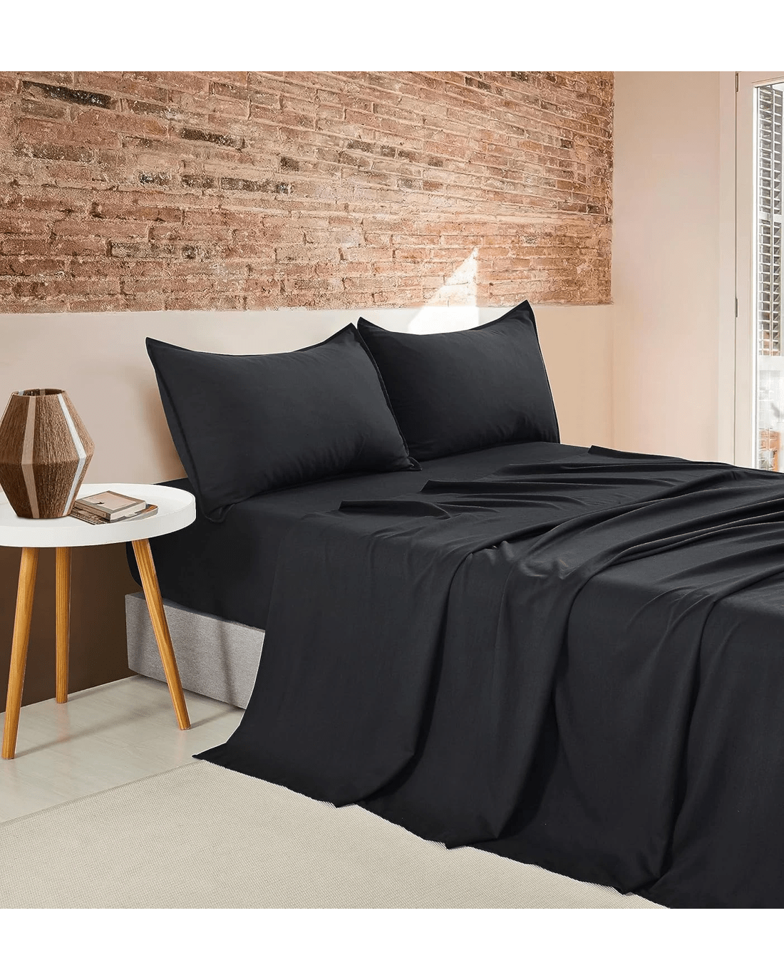 CleverPolly 100% Vintage Washed Microfibre Sheet Set - King Single Bed - Black
