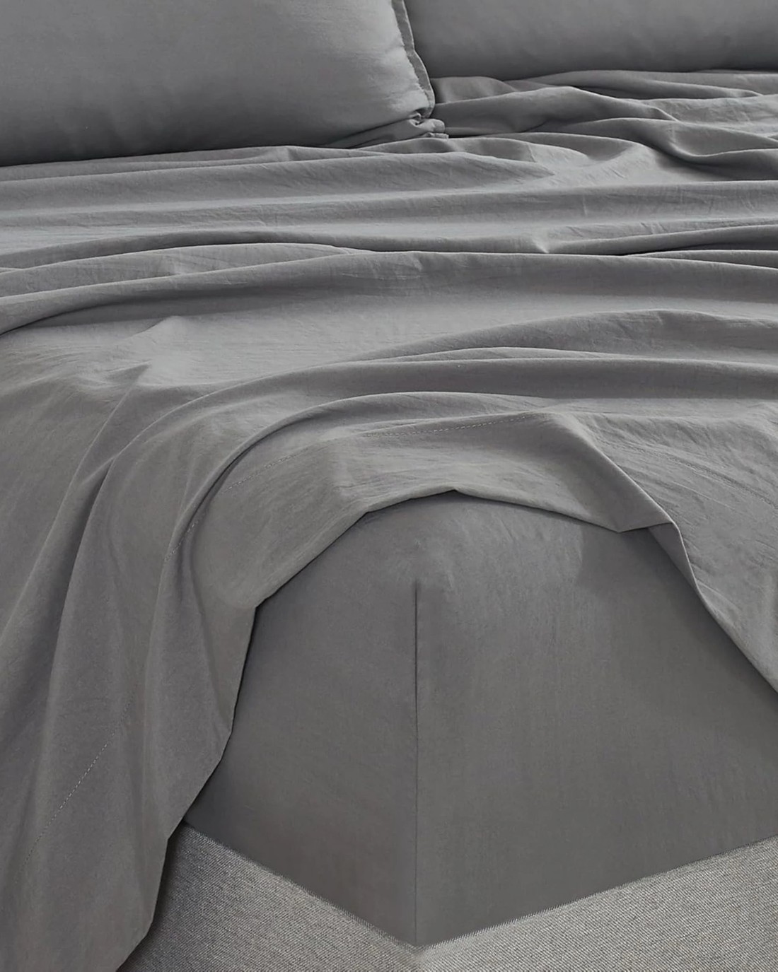 CleverPolly 100% Vintage Washed Microfibre Sheet Set - Super King Bed - Grey