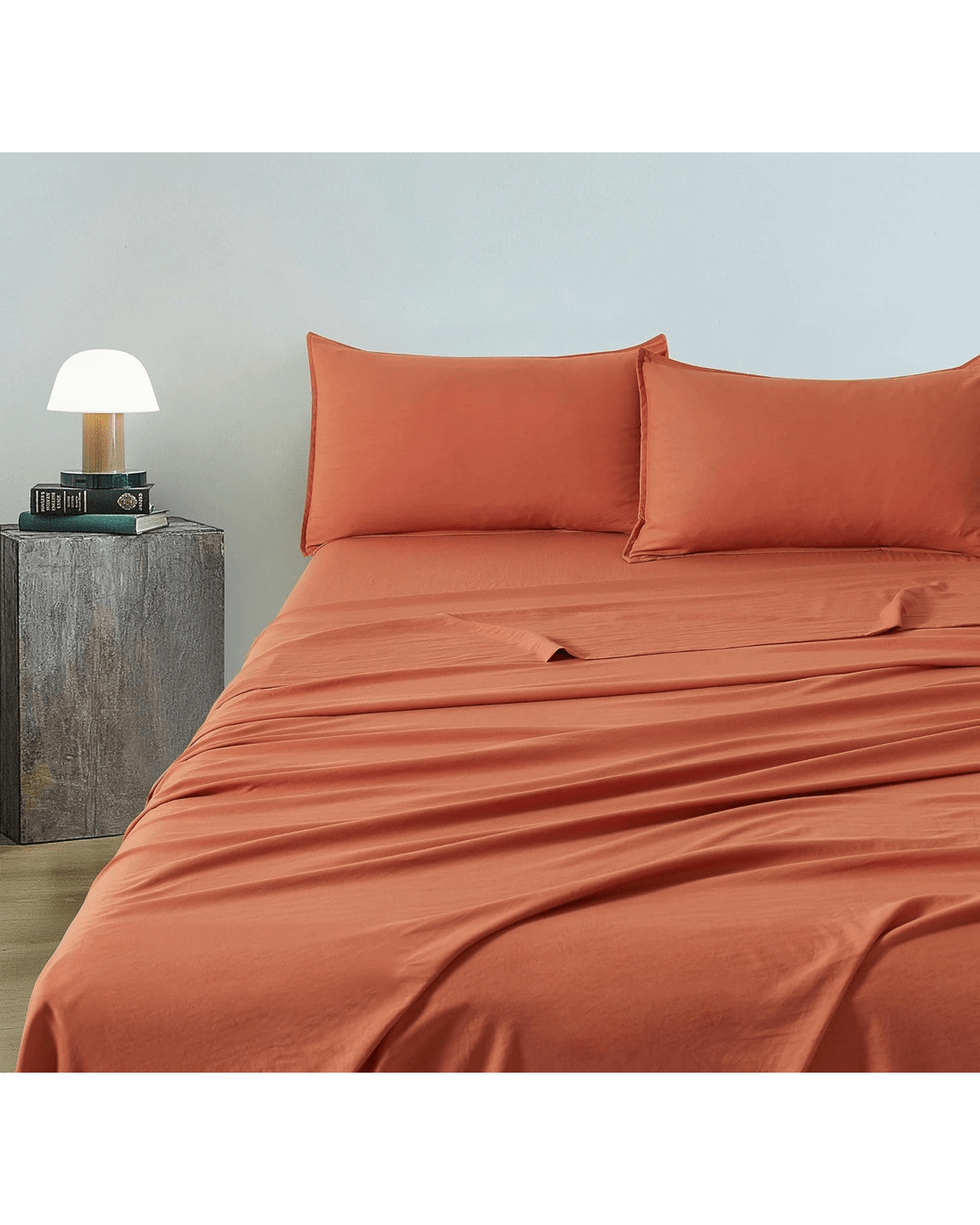 Sold by Gioia CasaCleverPolly 100% Vintage Washed Microfibre Sheet Set - Terracotta - King Bed