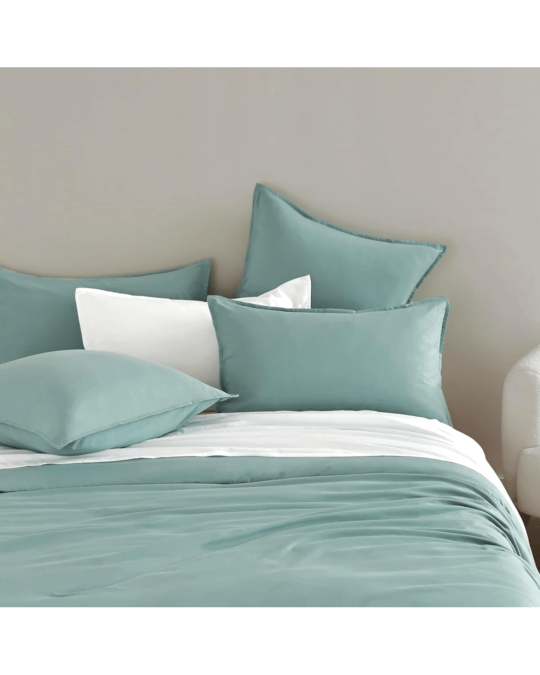 CleverPolly 2-Pack Vintage Washed Microfibre Standard Pillowcases - Seafoam