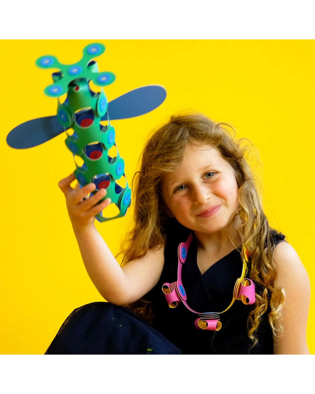 Whatever the Itsy Pack can do, the Crew Pack can do too (and much more)! With 30 flexible, multisensory, magnetic pieces including fun "spinner" accessories, you can bring turtles, helicopters, and tiny robots to life! Made for kids and kids at heart age 4+. Choose from 3 different color options (flamingo/turquoise, green/blue, pink/yellow). Clixo Features: Build countless creations from a handful of pieces, No setup, batteries, or screens/devices needed. Made of top quality, eco-friendly pieces for hours of play. Has a Light and compact, stack and pack form factor with multisensory details for visual and creative stimulation. Comes with a guide and free access to more tips and builds. Ages: 4+