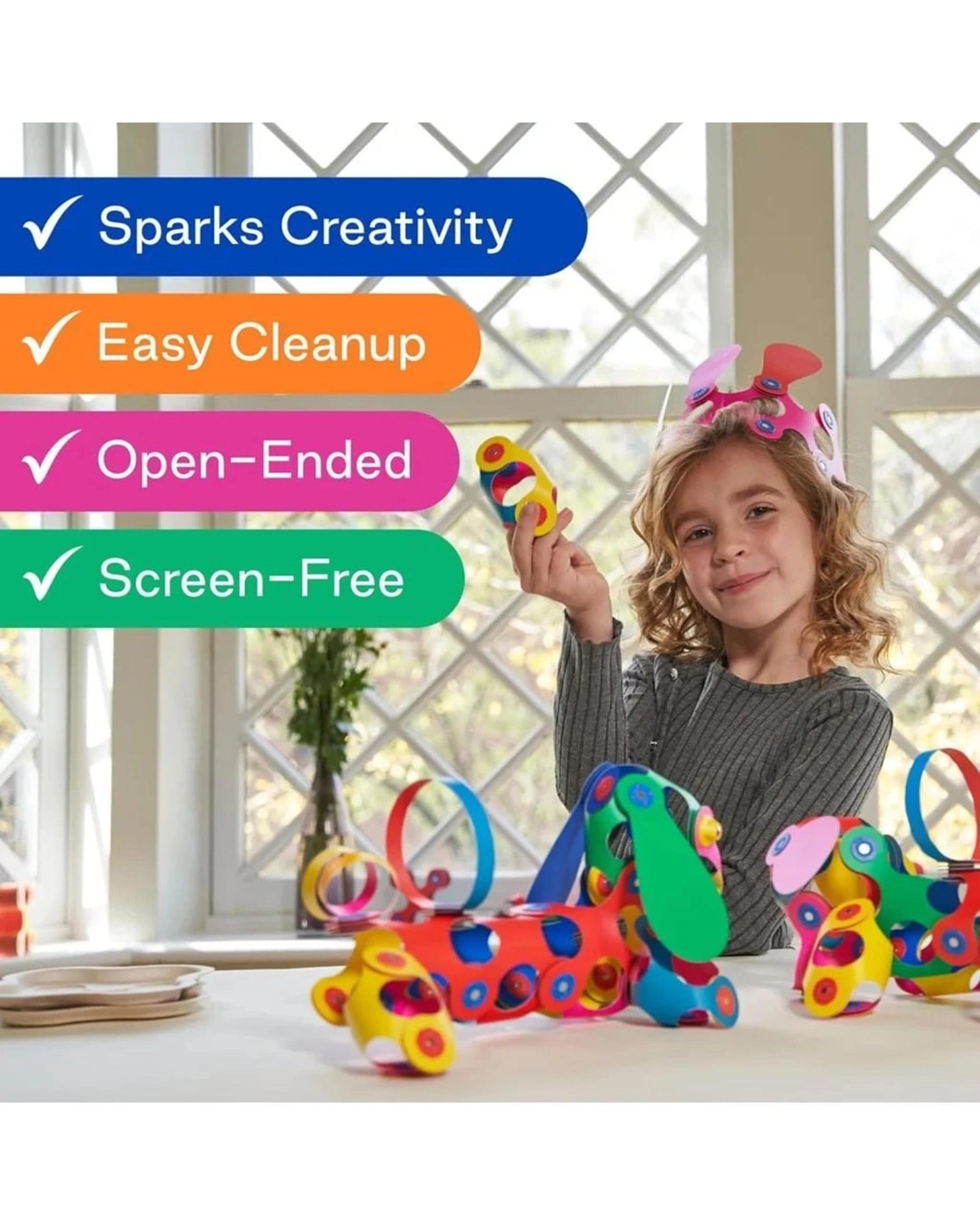 Share the ultimate Clixo experience with your classroom! With 100 pieces, our introductory educator's guide, and 32 activity prompt cards for collaborative and independent play, spark your students' creativity while developing STEAM, problem solving, and sensory exploration skills. Take creativity for a spin - Clixo's research-based, modern design sparks kids' imaginations with flexible shapes, multisensory pieces, and fun accessories that bring hours of fun STEM learning, sensory regulation, stress relief and fine motor development. Click, snap, spin, stack, and flex these versatile pieces to make 3D builds that can be hung, looped, or worn. The Wheel Creator Pack sparks endless magnetic toy creativity, imaginative self-expression, and hands-on learning and fun. A complete creative toolkit - Click to construct a wide variety of creatures, cars, or cool creations that can move and spin with this collection of Rainbow colored parts and accessories. There are no screens, batteries, or extra tools needed. This 72 piece set includes wheels, brackets, and spinners to inspire young builders to experiment with hands-on play, creative design, and STEM concepts enabling them to learn through play. A quickstart guide with fun designs is also included. Extraordinary durability - Made of proprietary, recyclable, synthetic paper, magnets, and kid-safe polymers that meet ASTM, EN71, & CA prop 65 standards. All our pieces are BPA-free, phthalate-free and non-toxic. These rigorously-tested magnetic building toys are the best gift for 4 year old boys or girls and above. Portable and ready for play indoors or outdoors, no flat surface needed! Perfect for travel - Weighing less than a pound, pack this 72-piece magnet toy kit and go. Replace screen time with these open-ended toys. Simply stack and pack them along for a trip to the park, a long drive, a flight, or a fun family vacation. Stack and pack - Cleanup and travel are easy and worry-free. Simply stack and pack them along for car rides, restaurant trips, or on a family vacation. Clixo can fit inside most backpacks or purses! The fidgety fun play system also helps reduce stress and anxiety. They're durable enough for kids, fun even for grownups and versatile enough in solo or group settings. Best of all, they're washable - just wipe them down with a damp cloth or pop them in a dishwasher after play for a deep clean. Ages 4 - 10