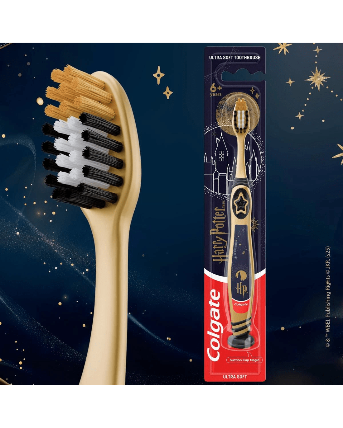 The Colgate Kids Manual Ultra Soft Toothbrush is for young wizards and witches with both milk and permanent teeth.