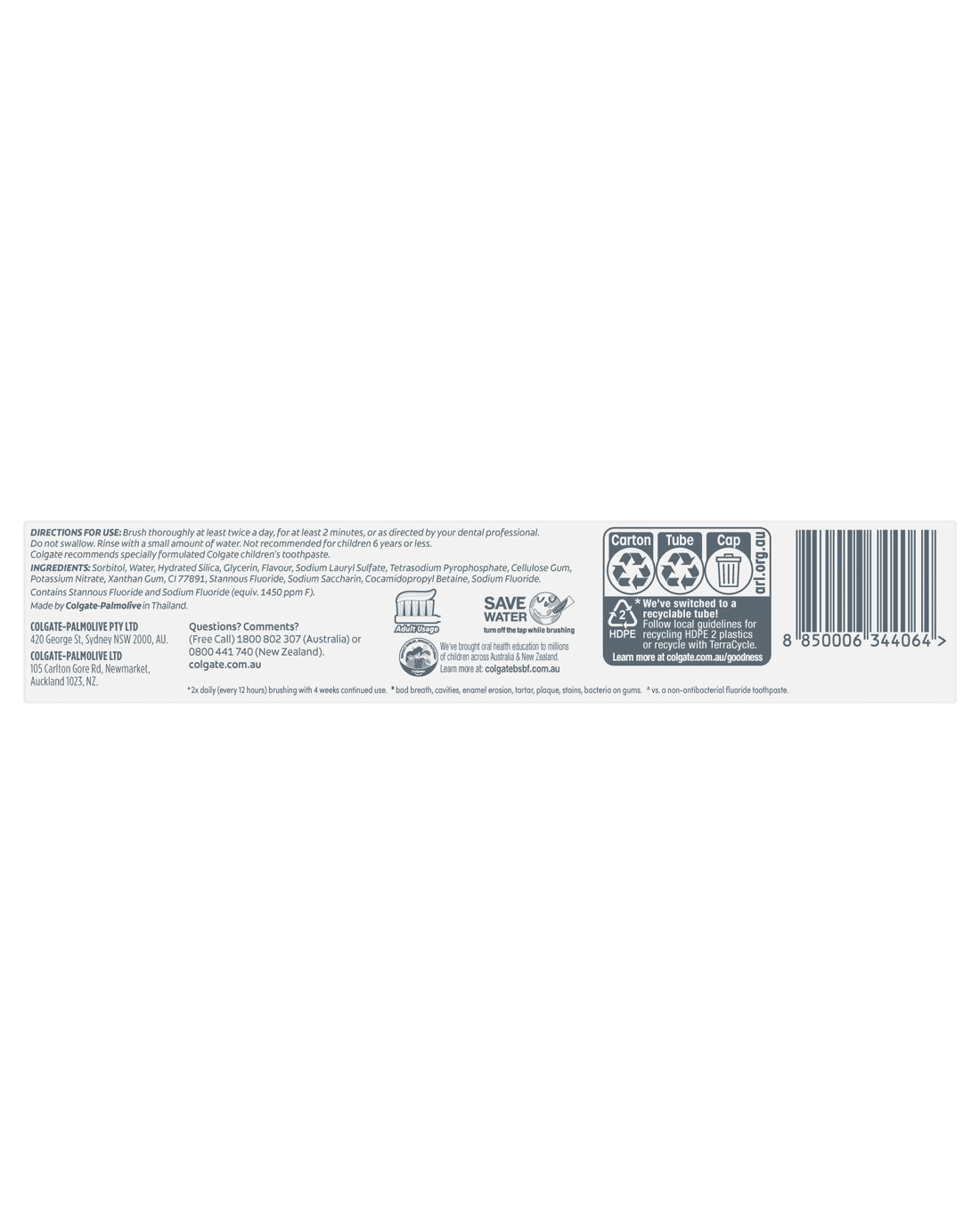 • Not recommended for children 6 years or less. Colgate recommends specially formulated Colgate children's toothpaste.