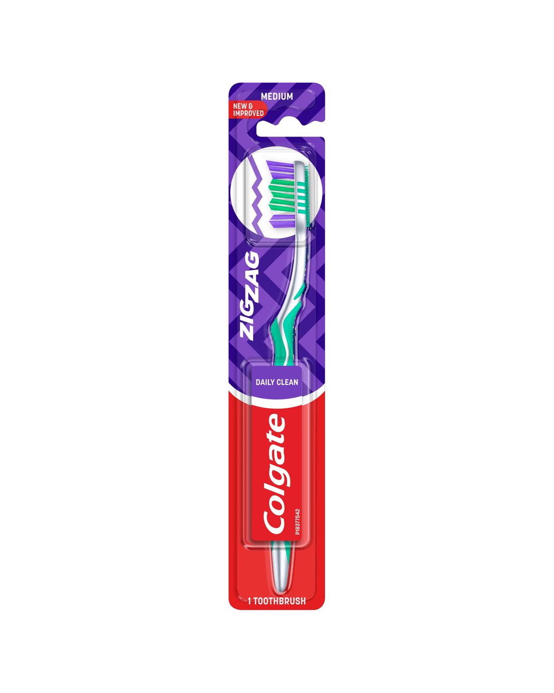 Colgate Zig Zag Medium Bristle toothbrush cleans more than just teeth, use it to clean: Teeth, cheeks, tongue and gums