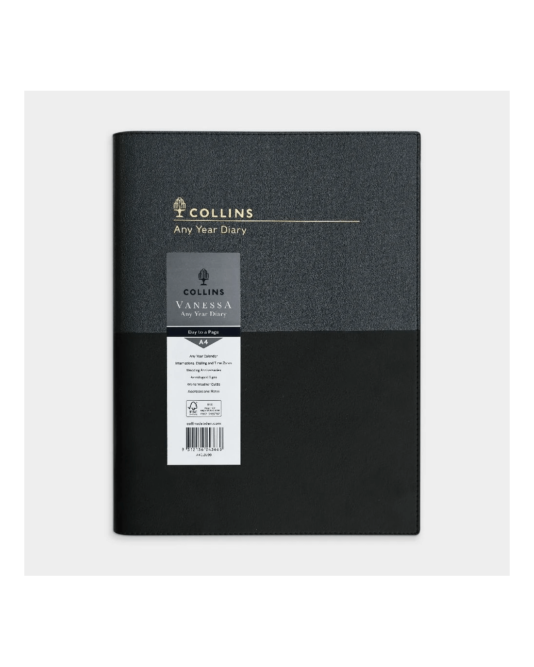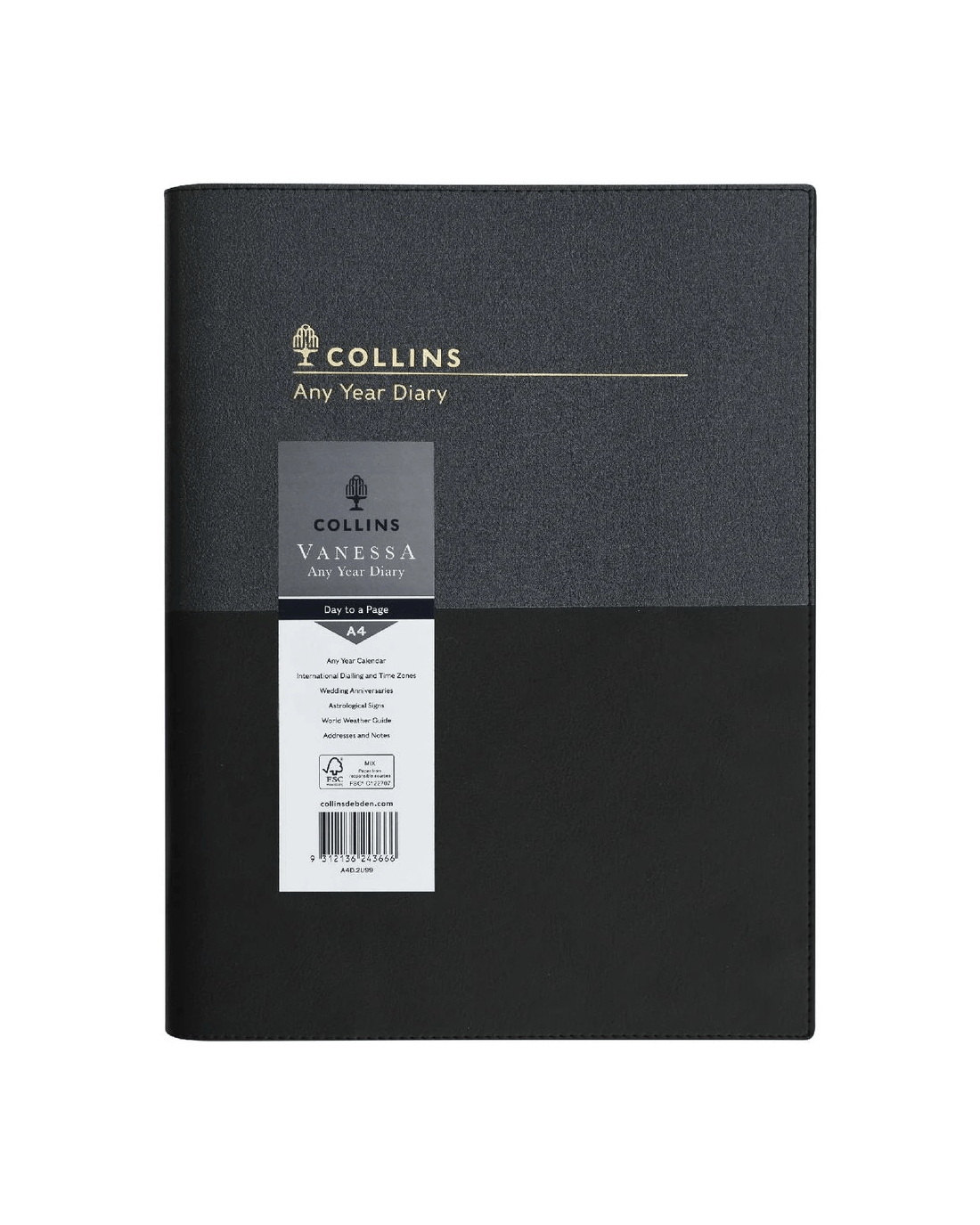 Sold by OfficeworksCollins A4 Day to Page Undated Vanessa Diary Black