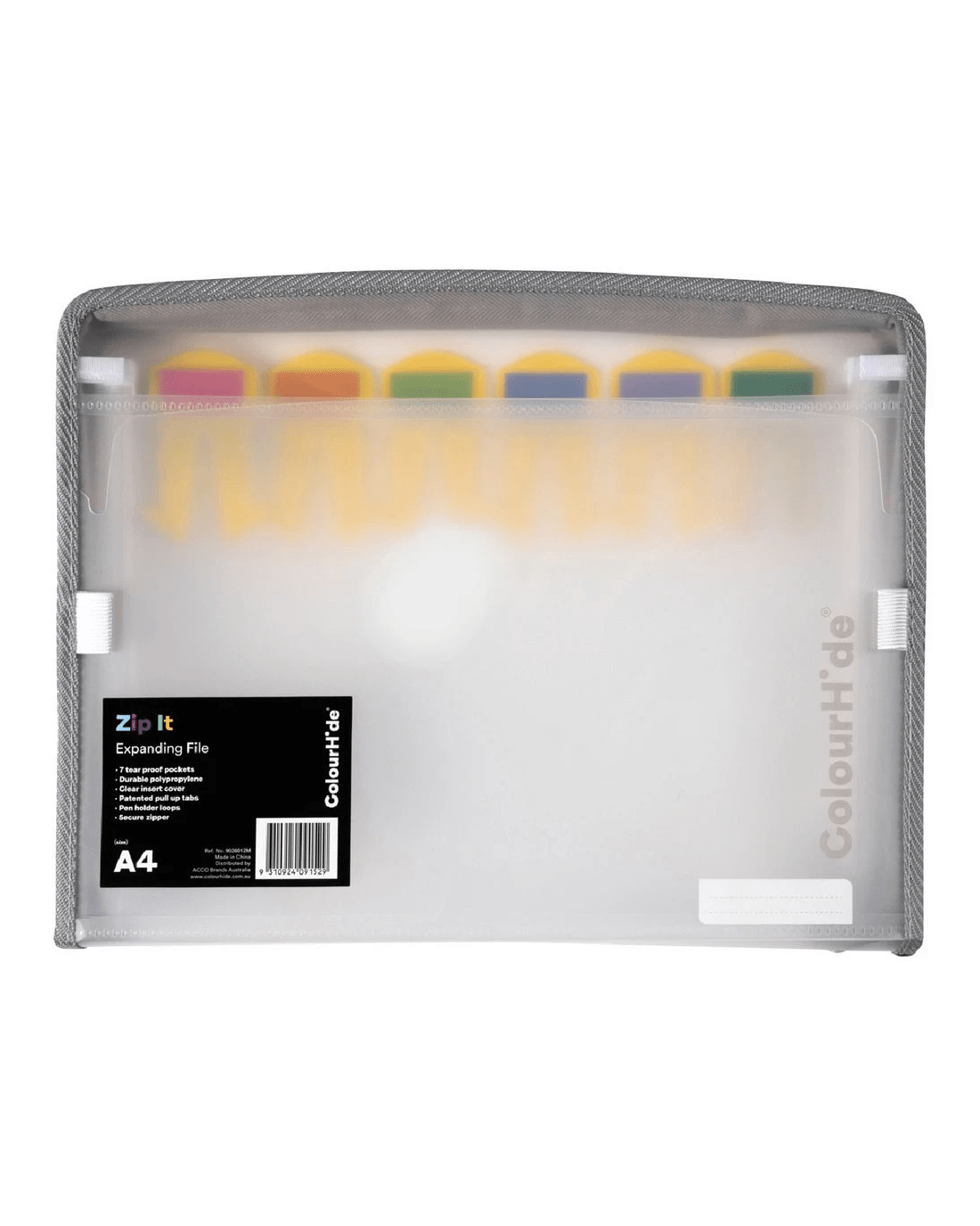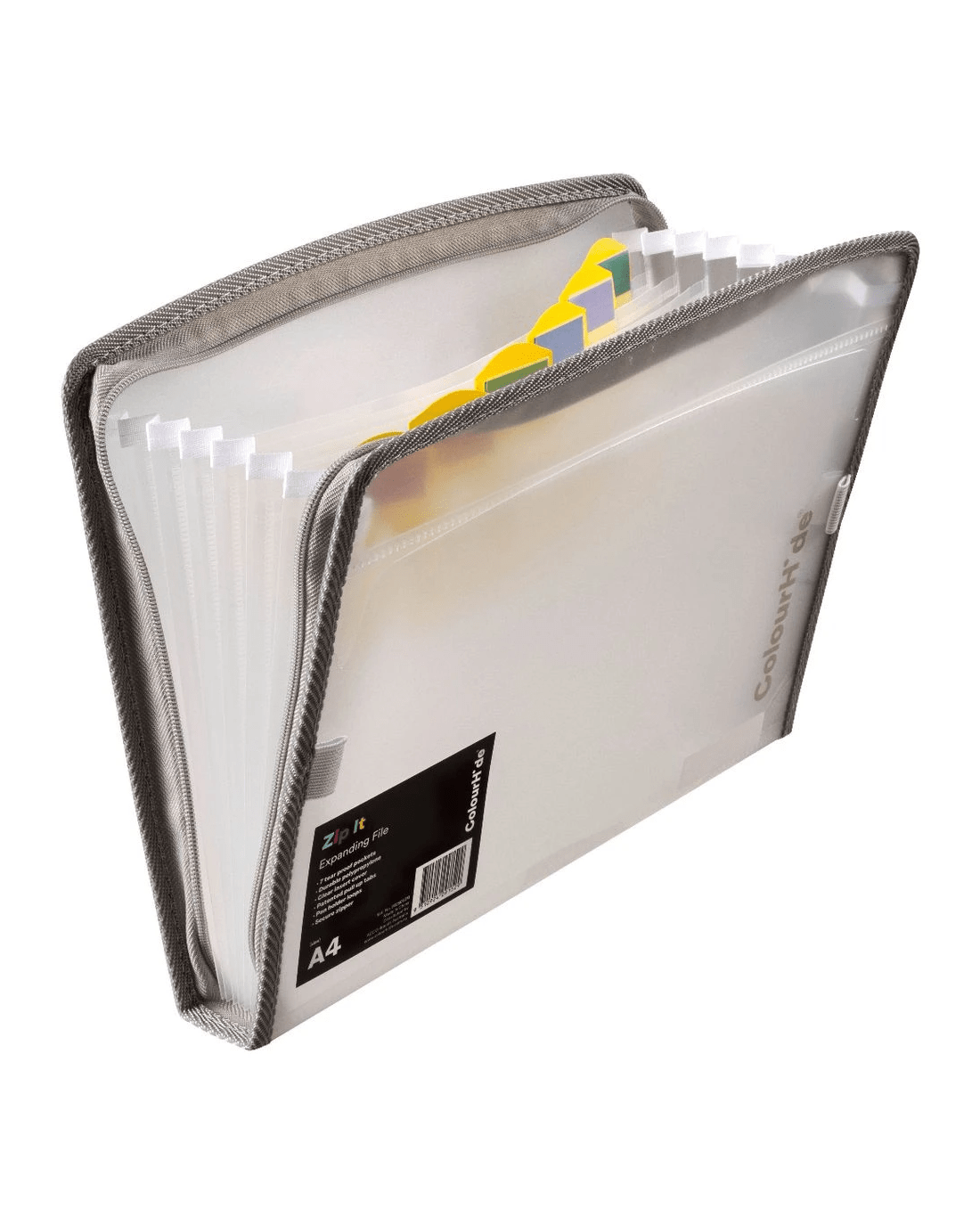 This Colourhide Zip It Expanding File is a great tool for safely storing and transporting your documents. It comes with a zip closure for security, while the expanding feature allows you to fit more papers inside. Its transparent design makes it easy to locate documents while on the go.