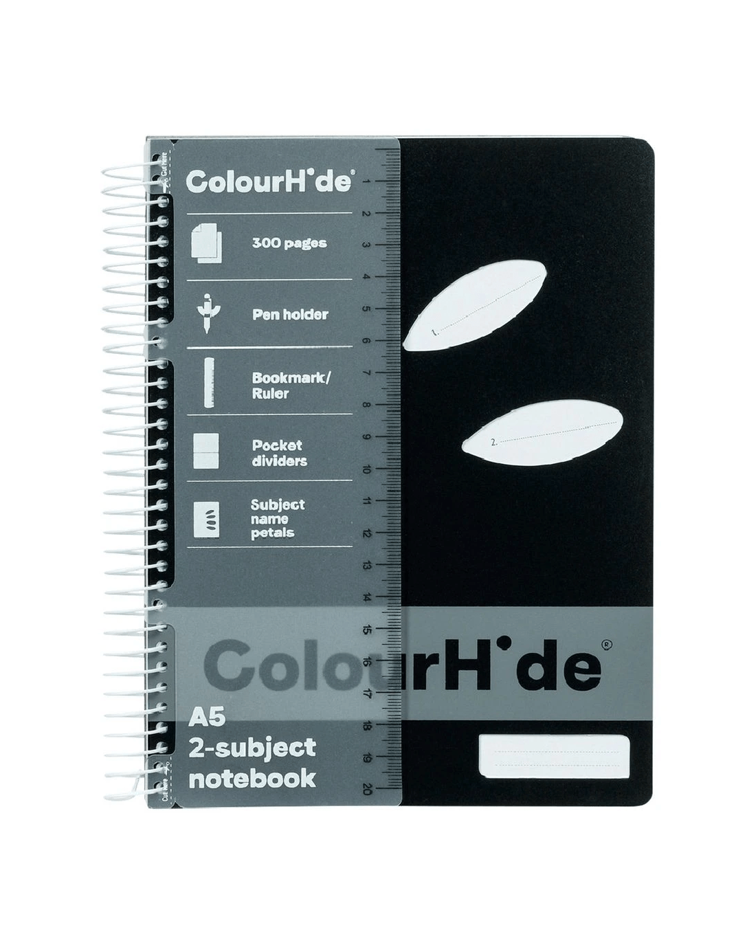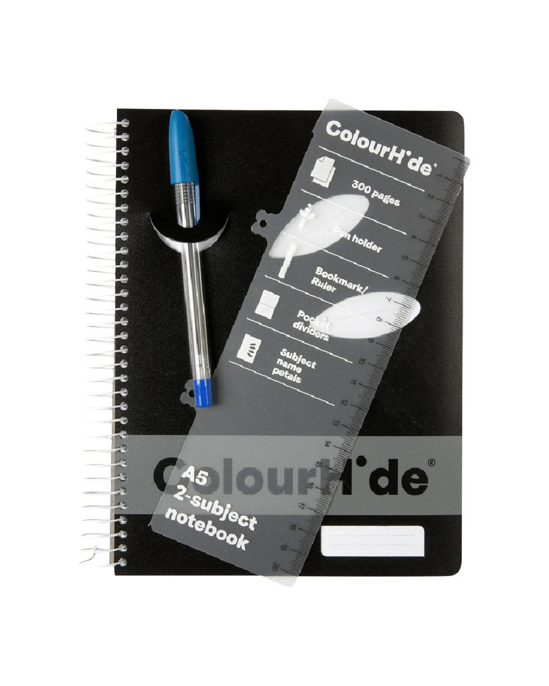 Sold by OfficeworksColourHide A5 2 Subject Notebook 300 Page Black