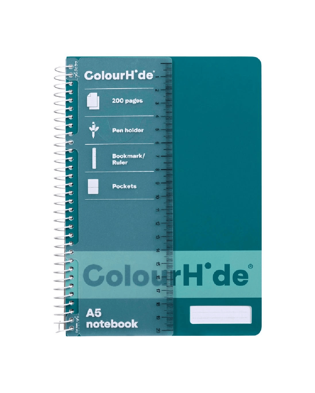- This notebook comes in a teal colour.