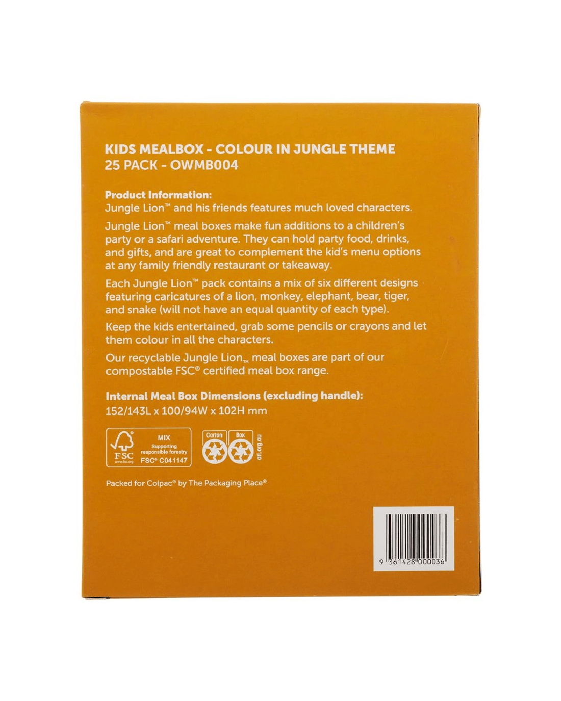 Sold by OfficeworksColpac Kids Mealbox Colour-in Jungle 25 Pack