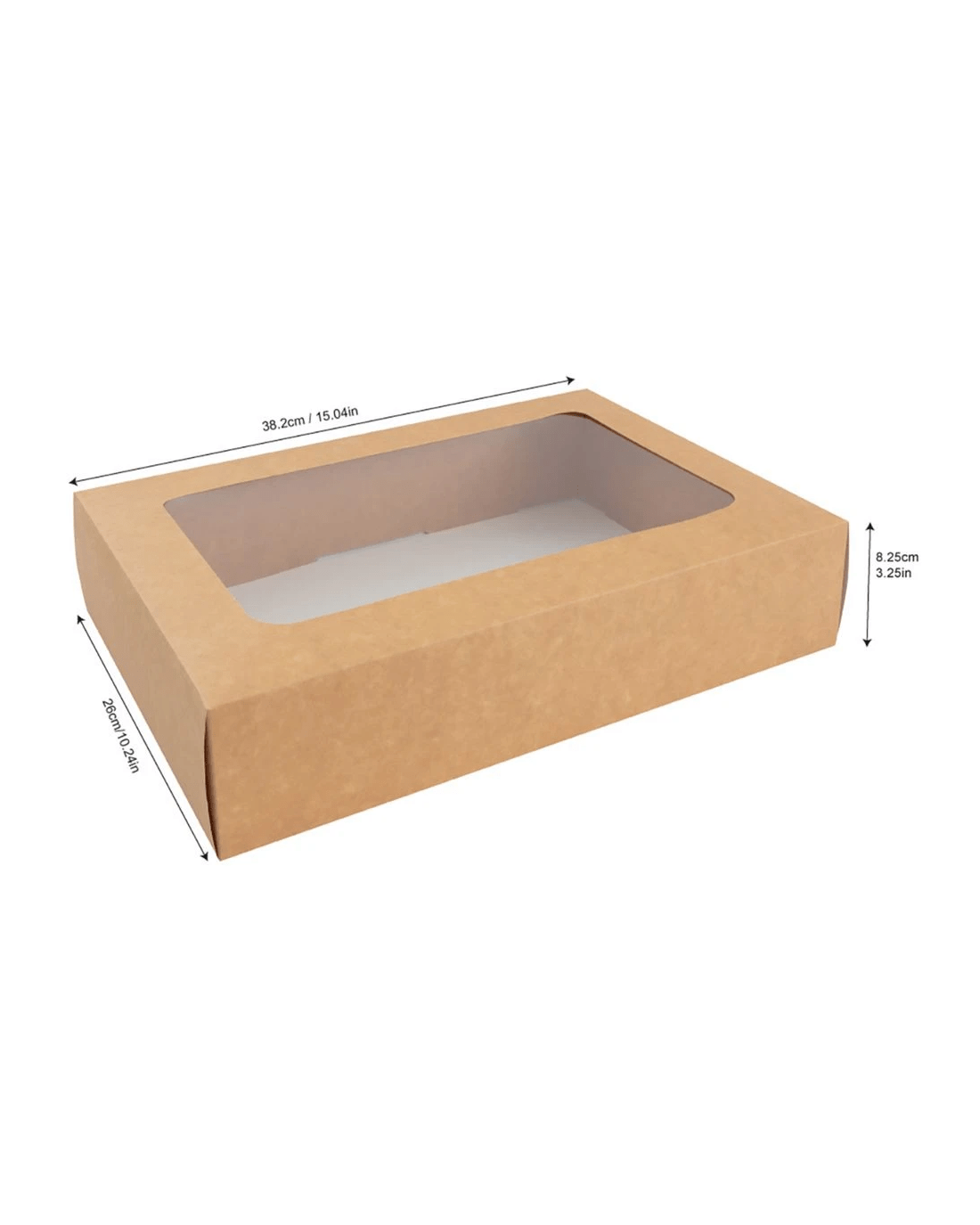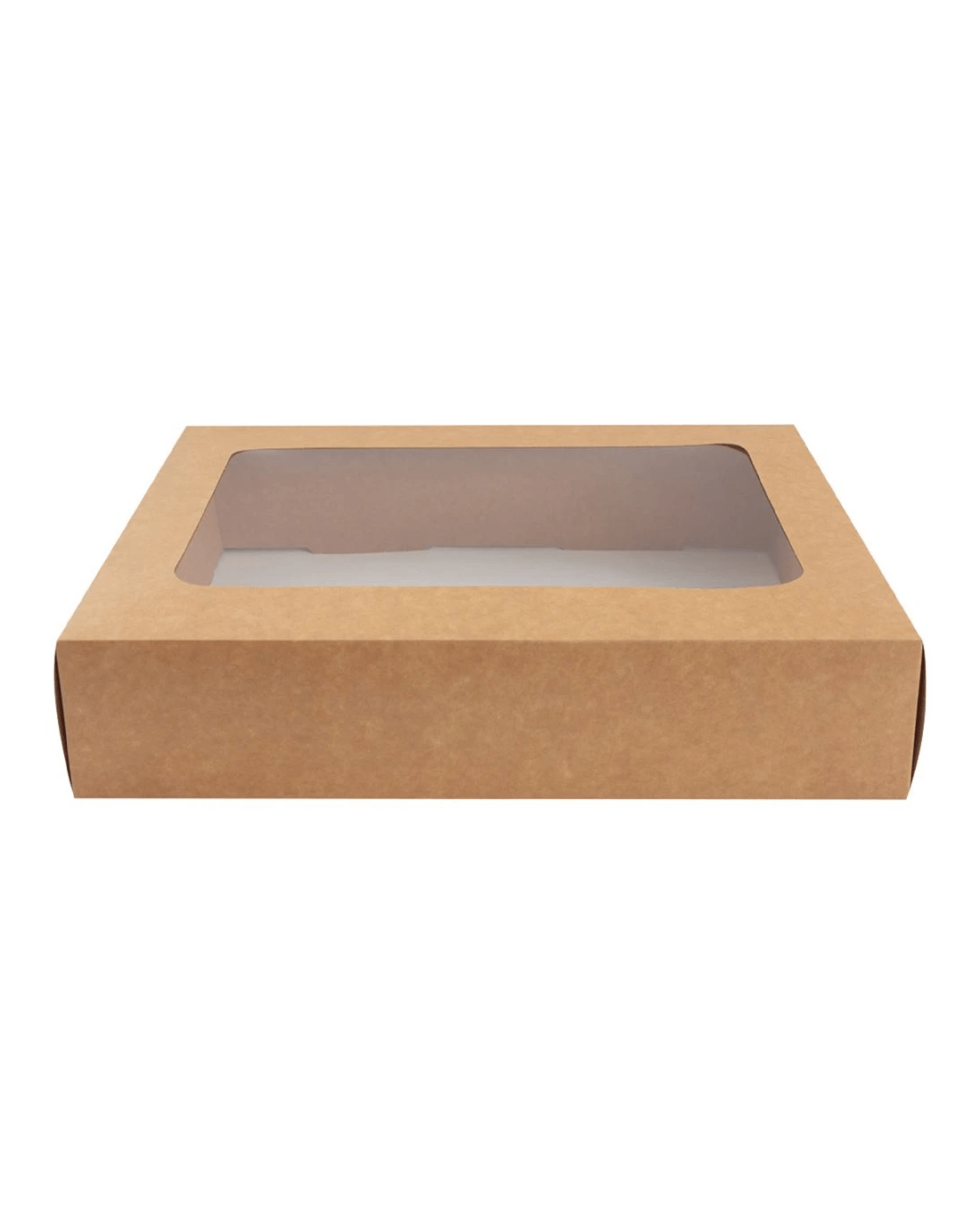 - They have a kraft board construction with a PLA window that keeps the product inside visible.