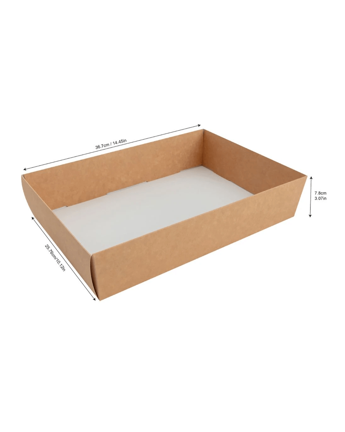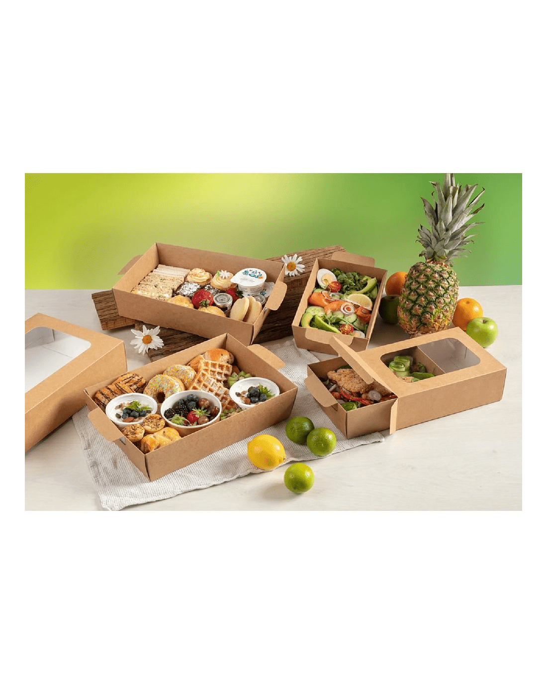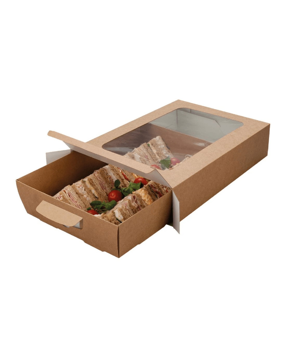 These Colpac Platter Boxes are designed for maximum product visibility. They feature robust double wall side panels, and have pop out handles so that bases can be slid into the sleeve without having contact with the food inside.