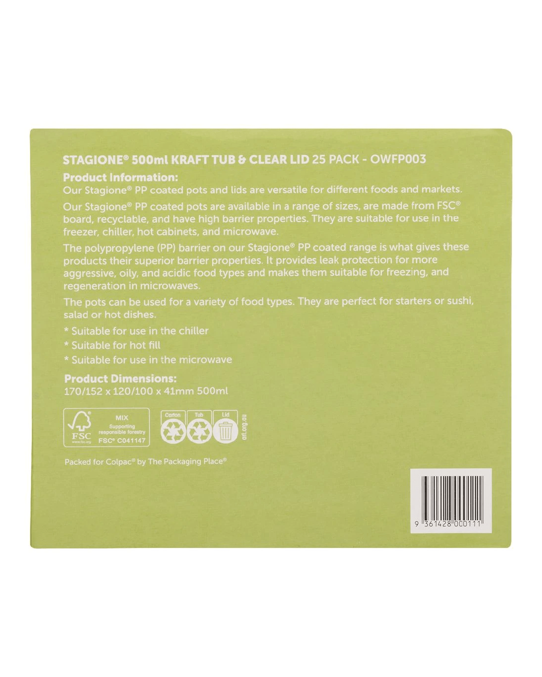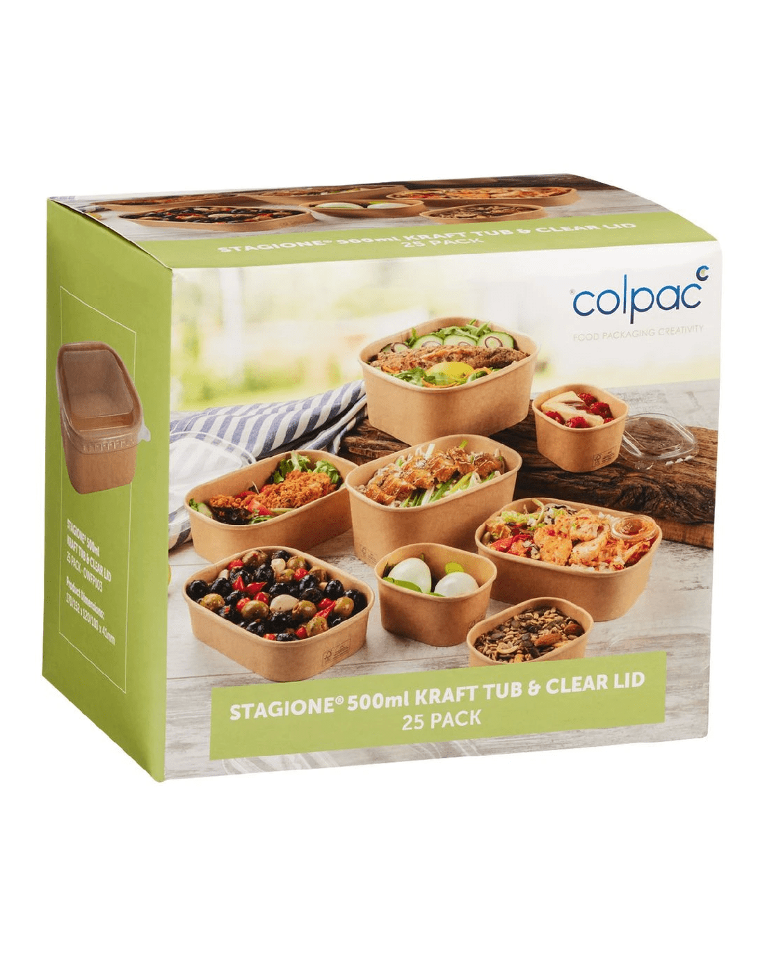 These Colpac Stagione Kraft Tubs are perfect for serving up a takeaway meal. They're made from FSC board with a polypropylene barrier that prevents leaks from even oily and acidic foods. They're suitable for freezing, microwaving, storing in hot cabinets and recycling.
