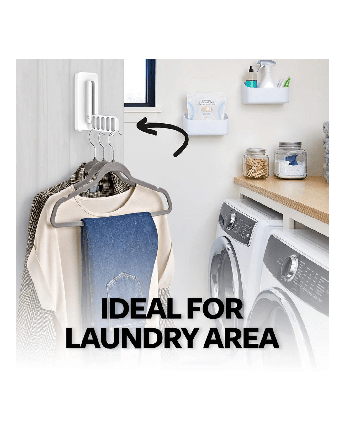 - It folds flat against the wall when not in use to save space.